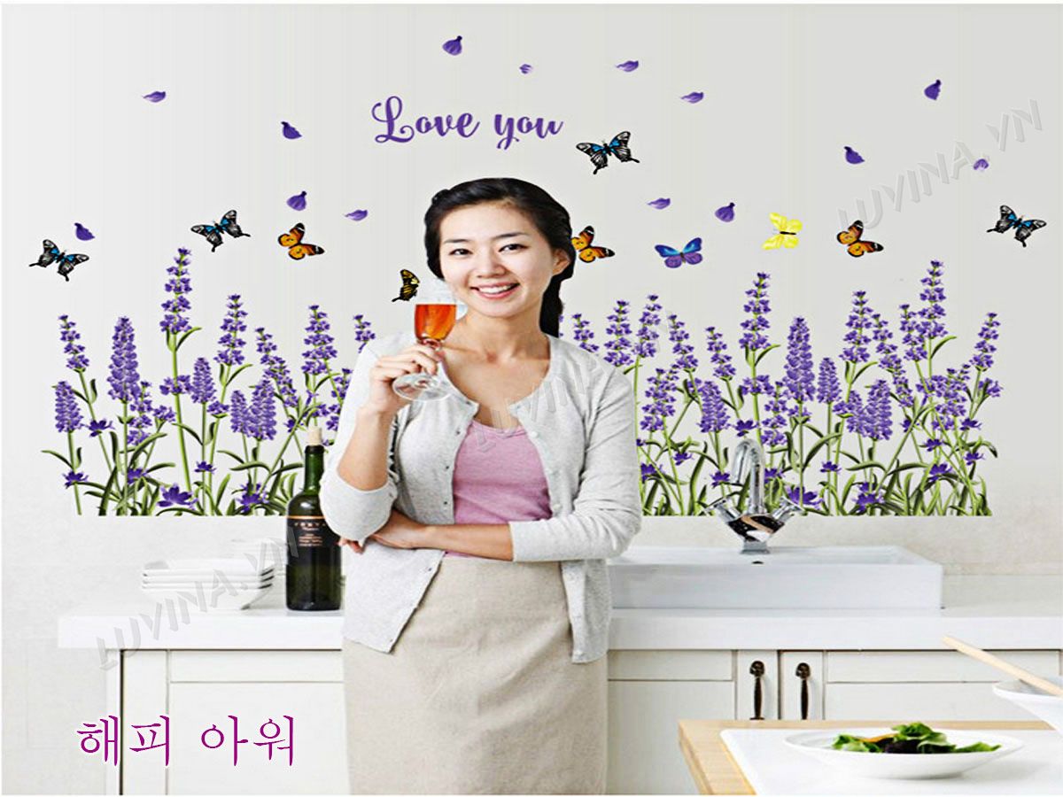 DECAL TRANG TRÍ CHÂN RÀO OẢI HƯƠNG TÍM