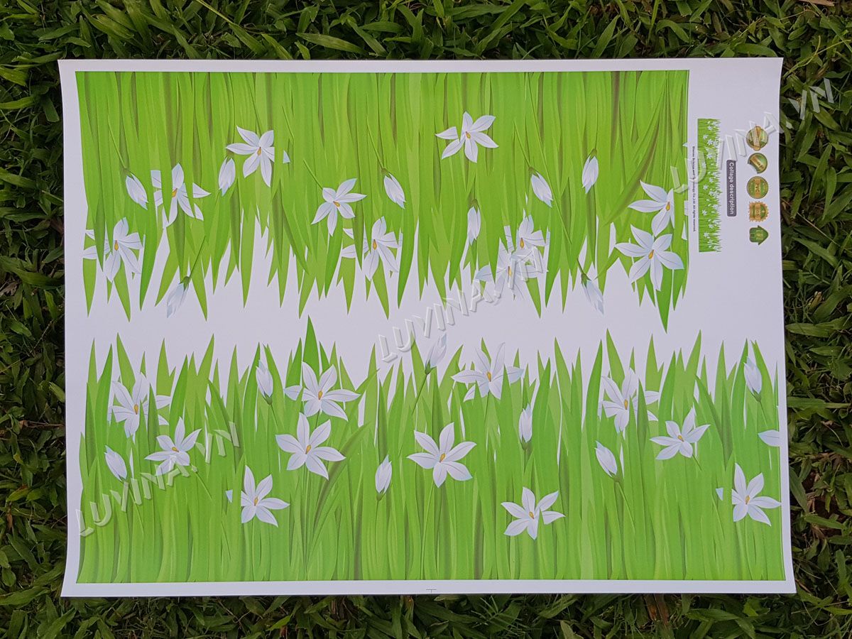 DECAL TRANG TRÍ CHÂN RÀO XANH HOA TRẮNG