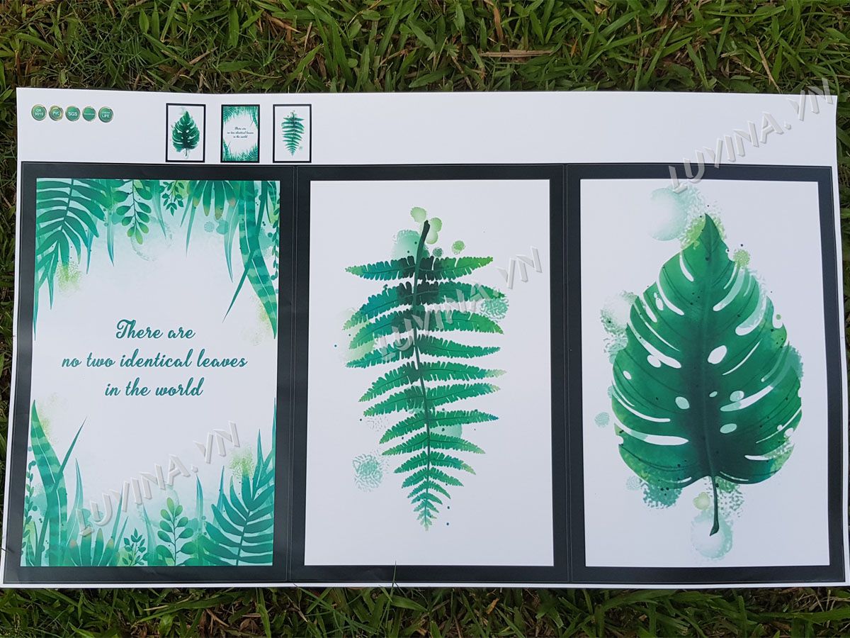 DECAL HÀN QUỐC CÔ KHUNG ẢNH LÁ XANH