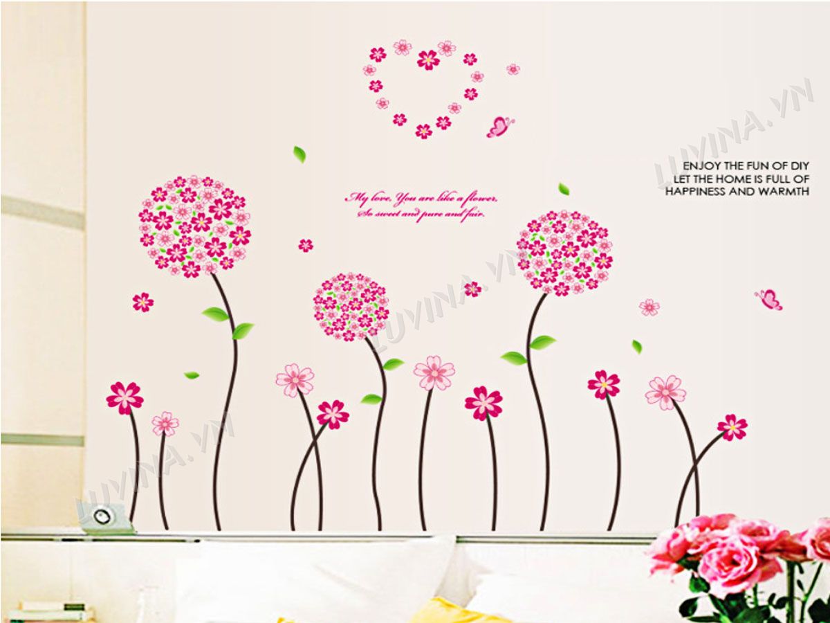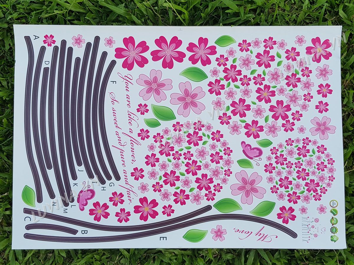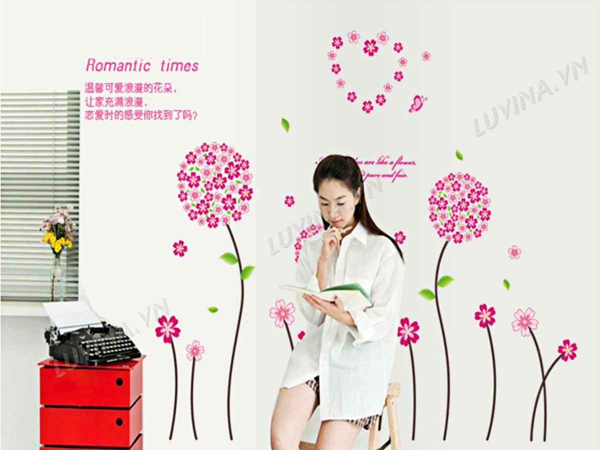 DECAL TRANG TRÍ 3 BÔNG TÚ CẦU HỒNG