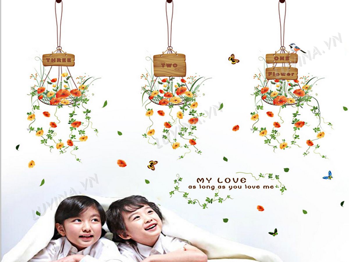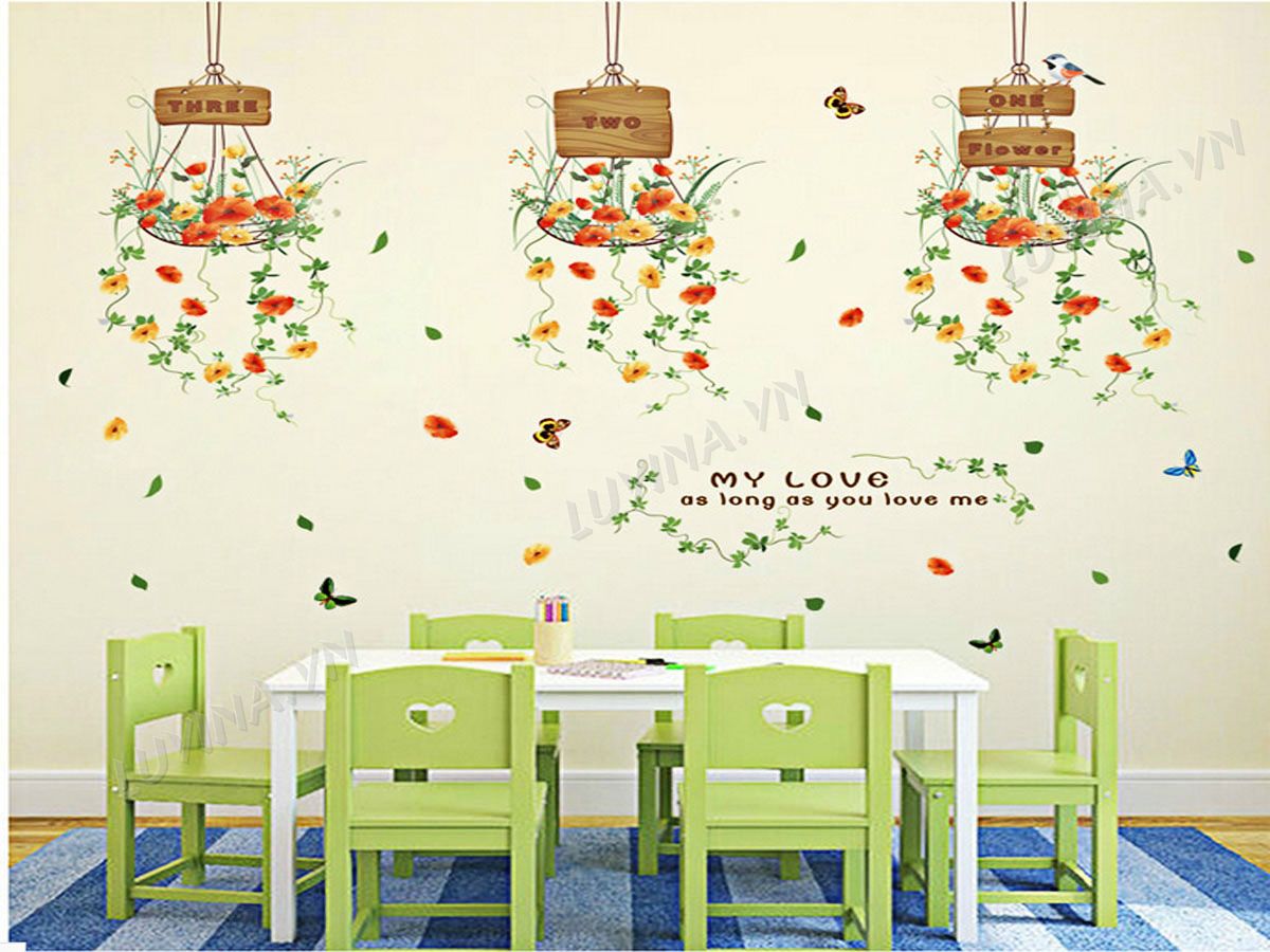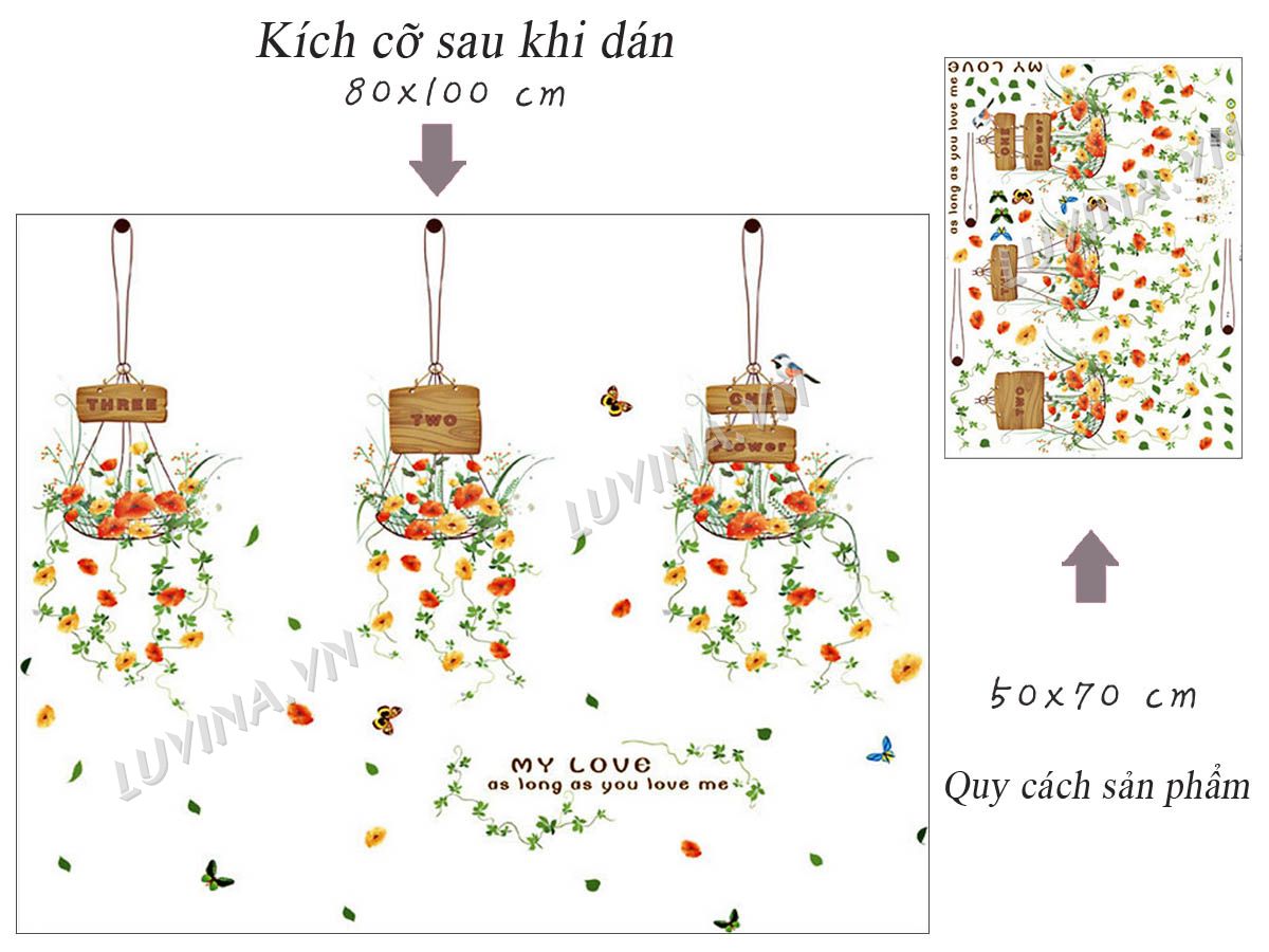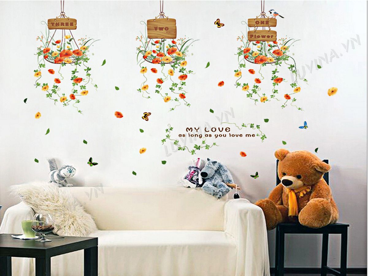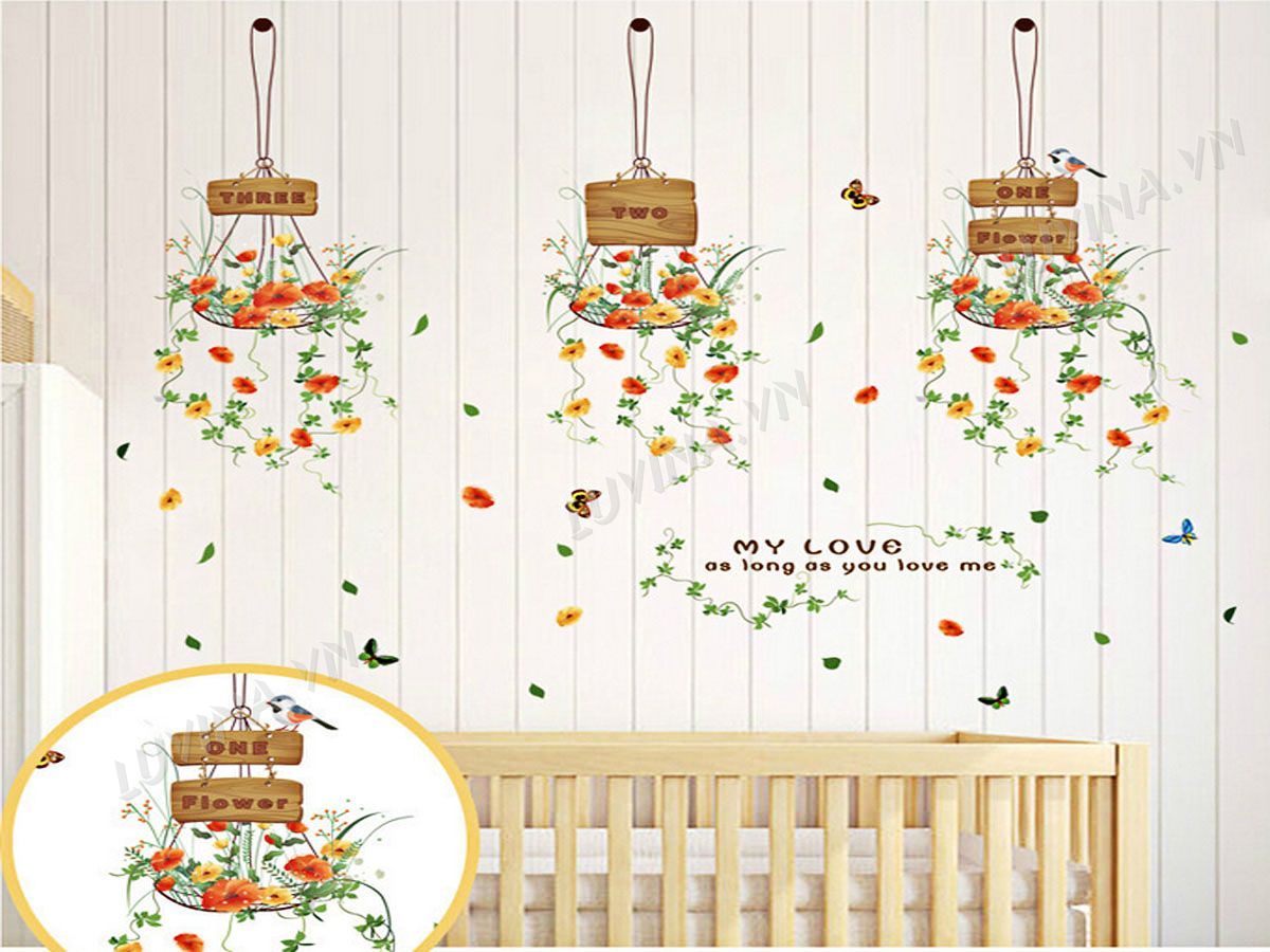 DECAL TRANG TRÍ 3 GIỎ HOA
