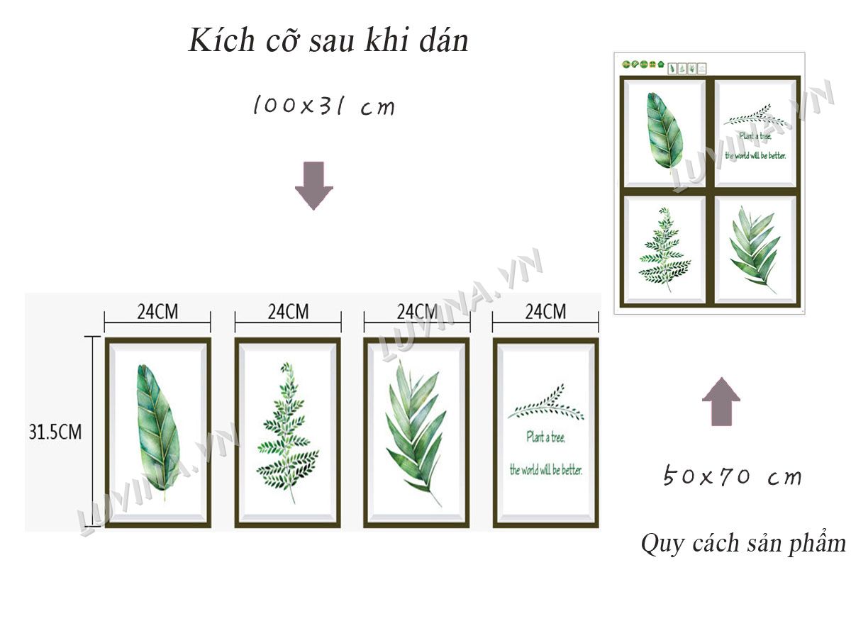 DECAL TRANG TRÍ 4 LÁ NHIỆT ĐỚI