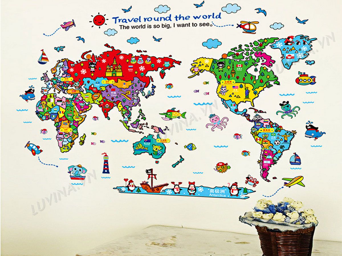 DECAL TRANG TRÍ BẢN ĐỒ SẮC MÀU