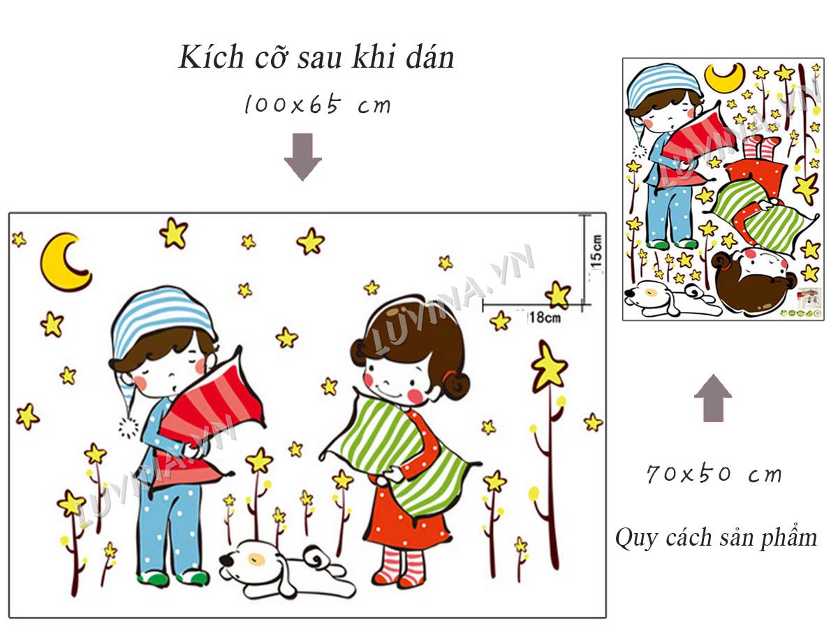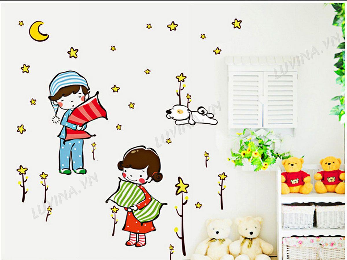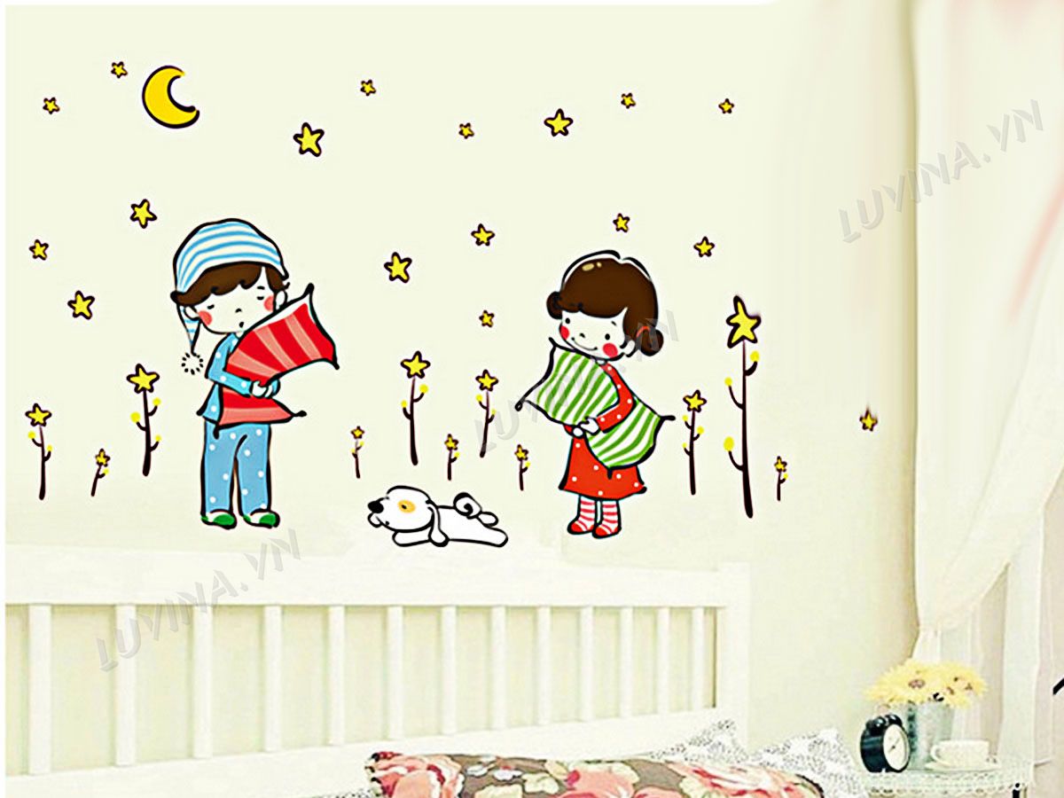 DECAL TRANG TRÍ BÉ ÔM GỐI