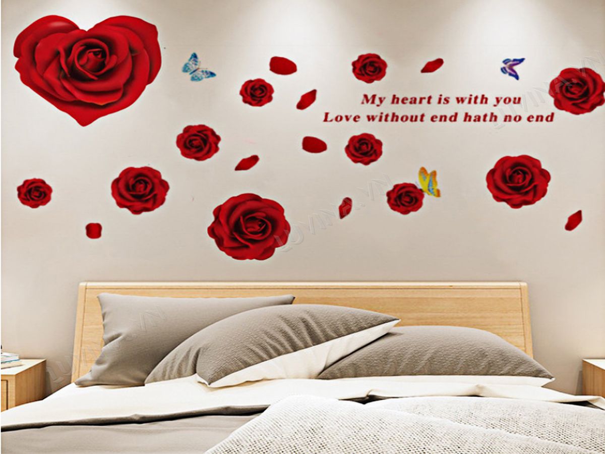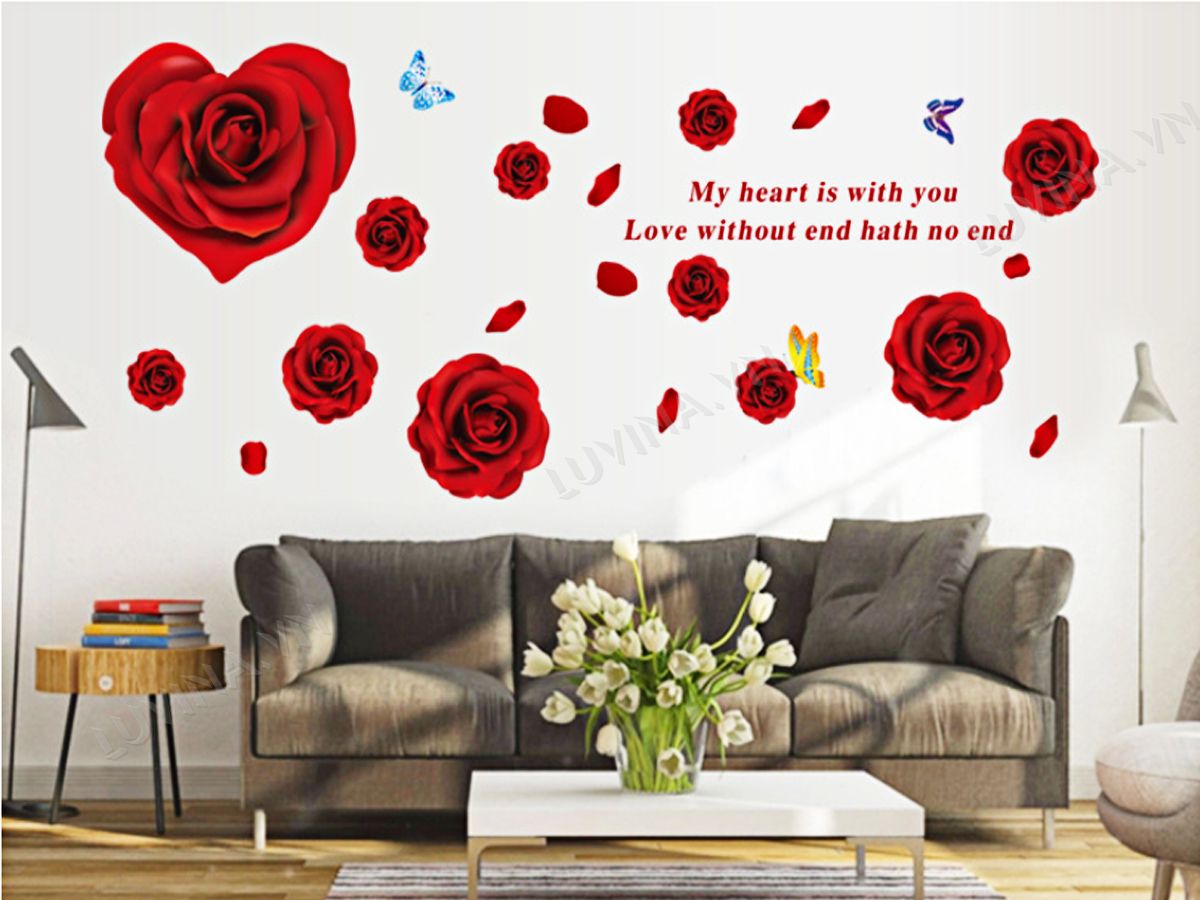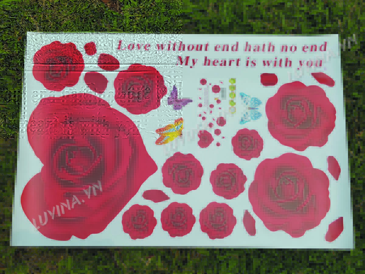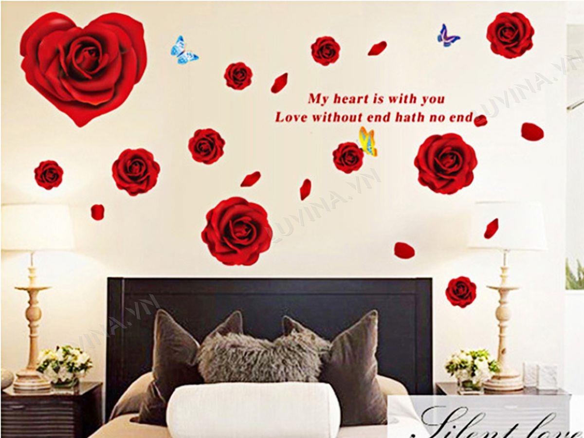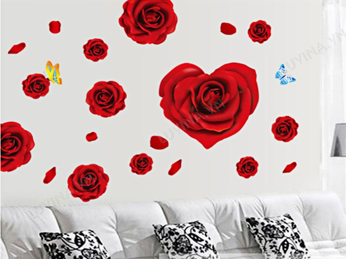 DECAL TRANG TRÍ CÁNH HOA HỒNG ĐỎ
