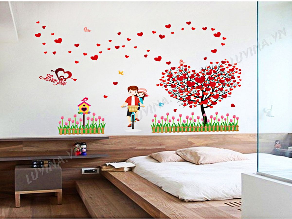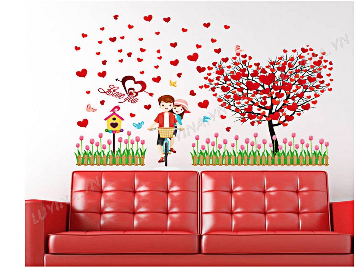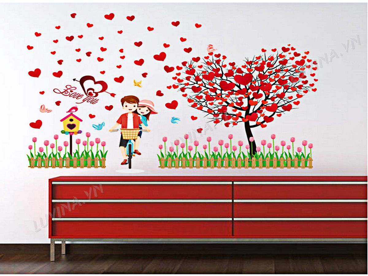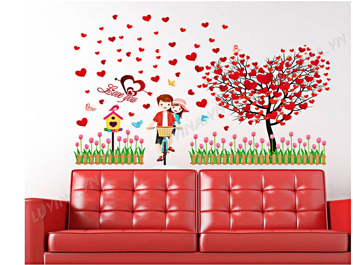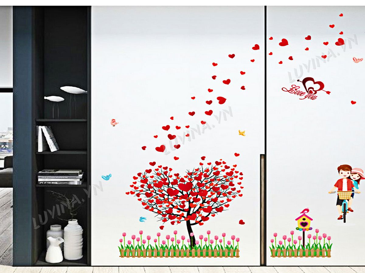 DECAL TRANG TRÍ CHÂN RÀO CÂY TIM