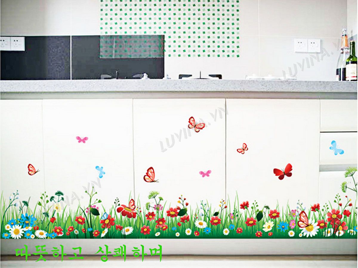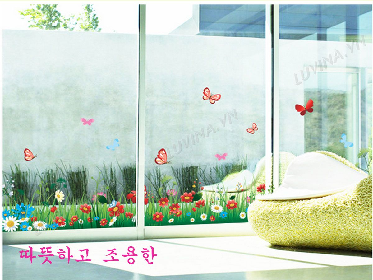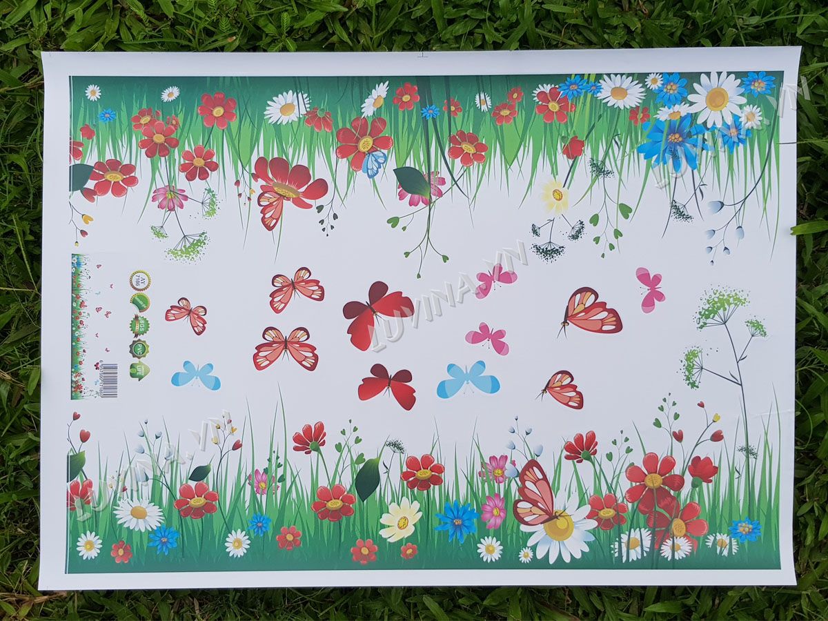 DECAL TRANG TRÍ CHÂN RÀO HOA BƯỚM