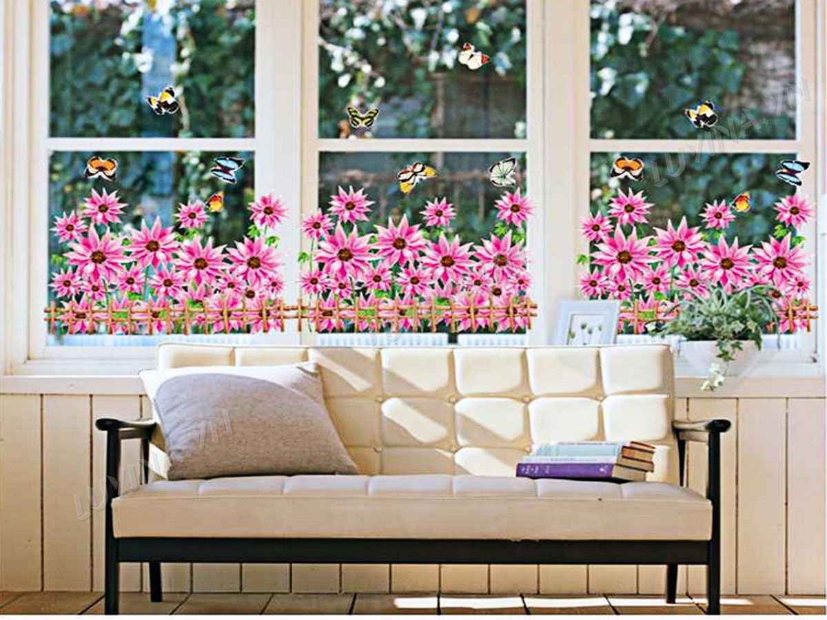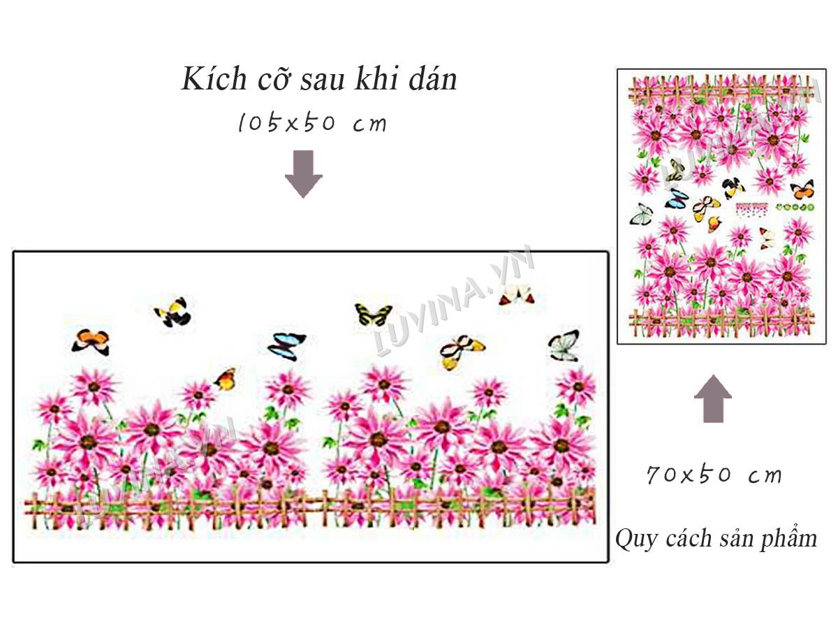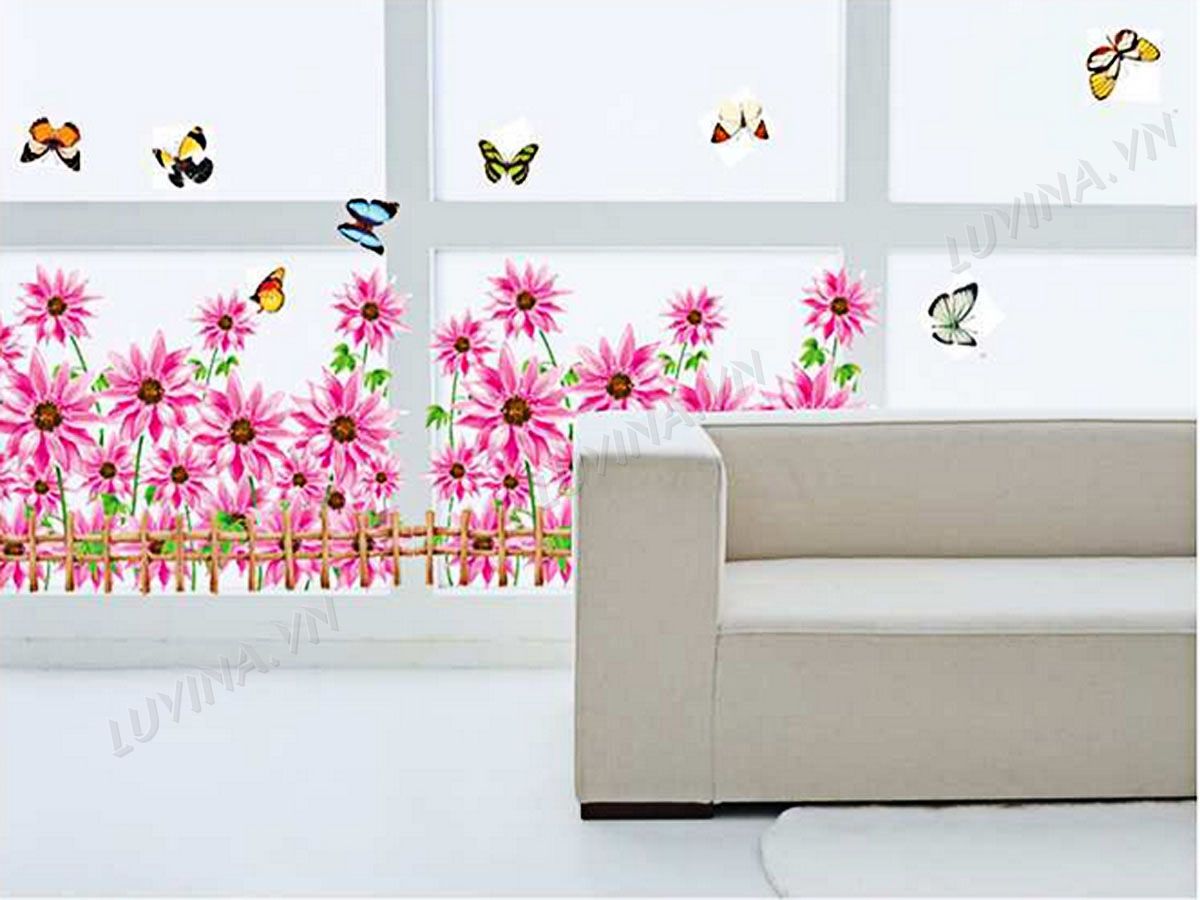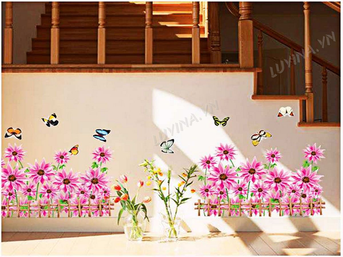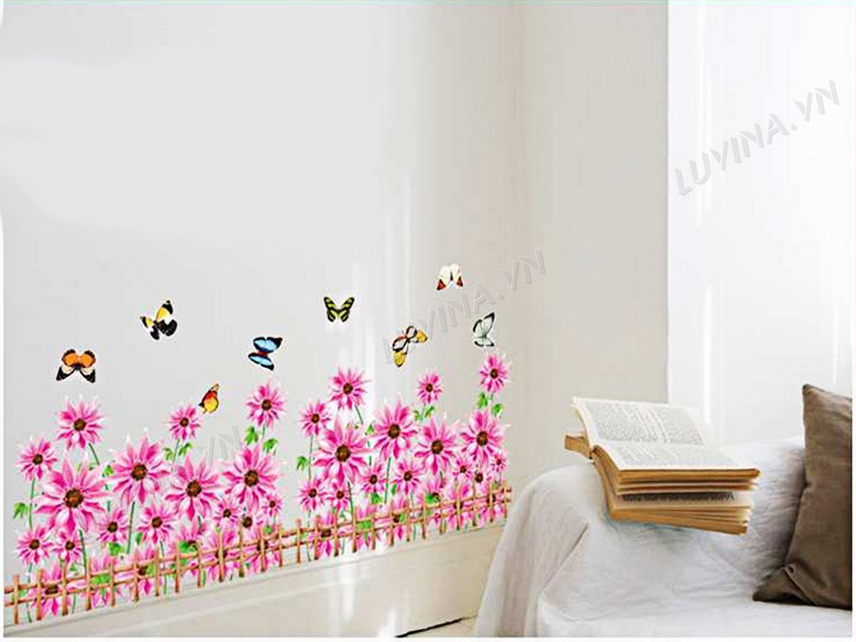 DECAL TRANG TRÍ CHÂN TƯỜNG CÚC HỒNG