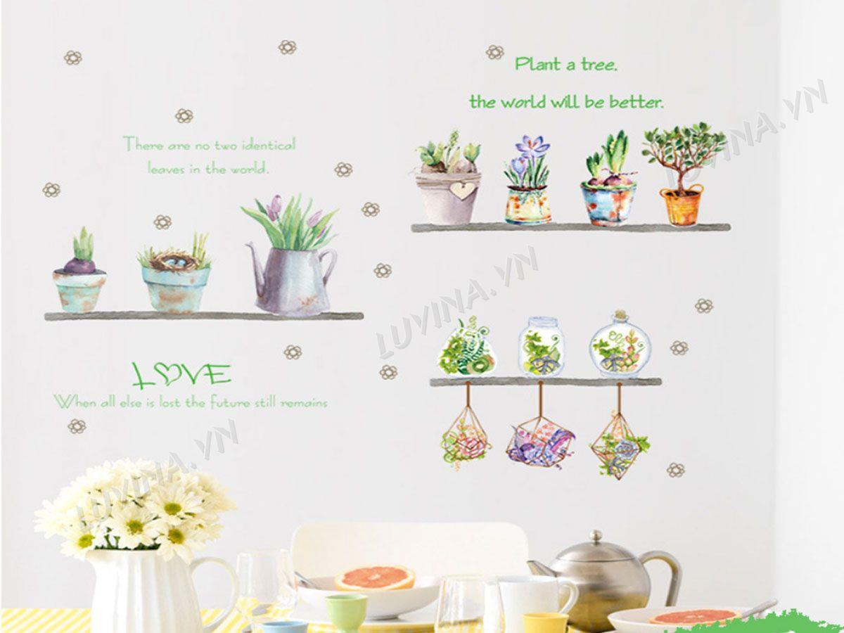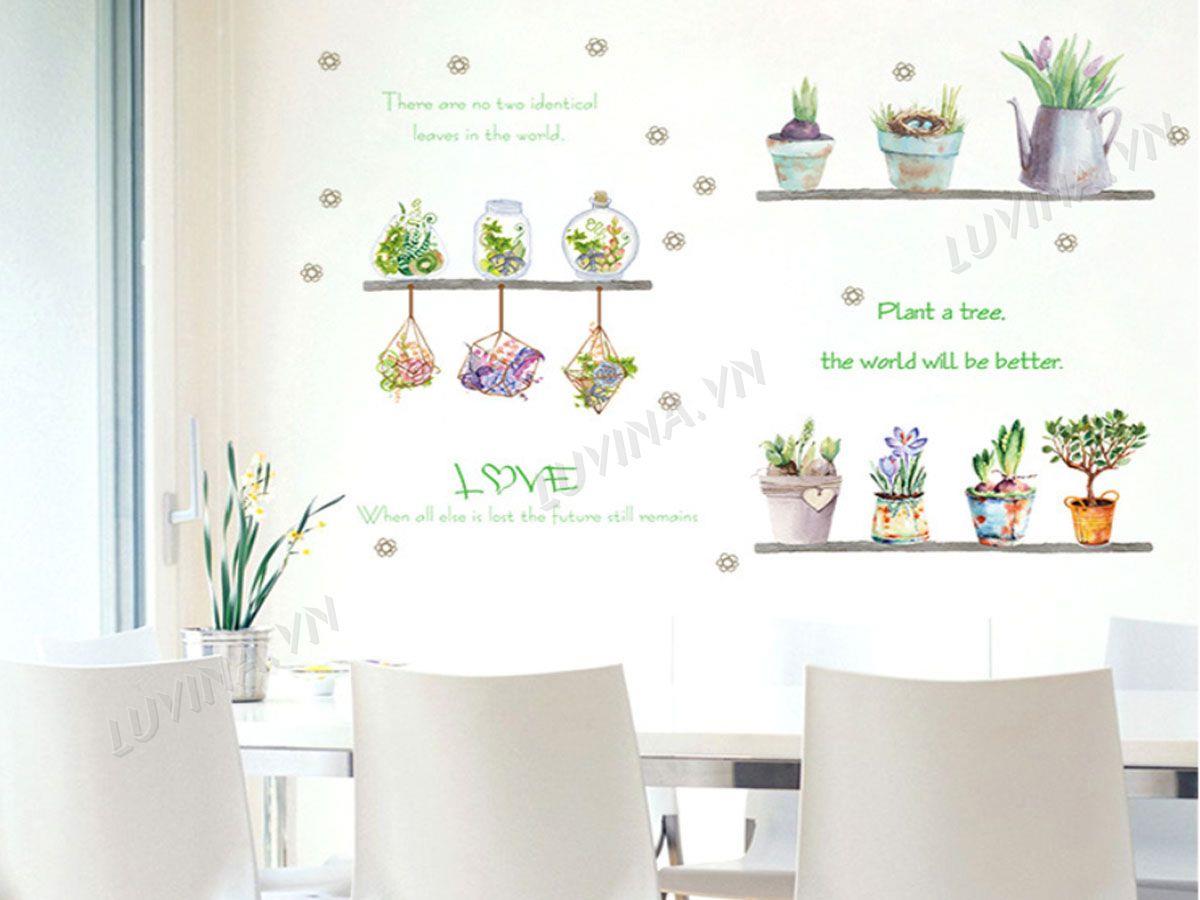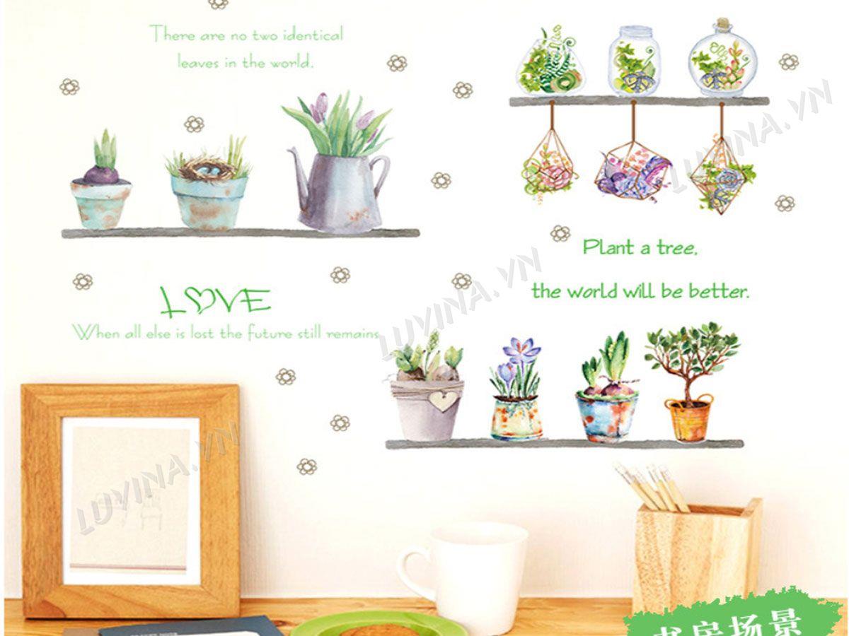 DECAL TRANG TRÍ CHẬU HOA NHỎ