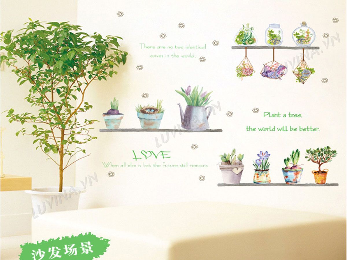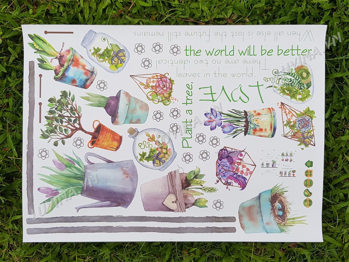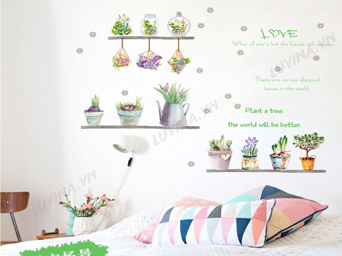 DECAL TRANG TRÍ CHẬU HOA NHỎ
