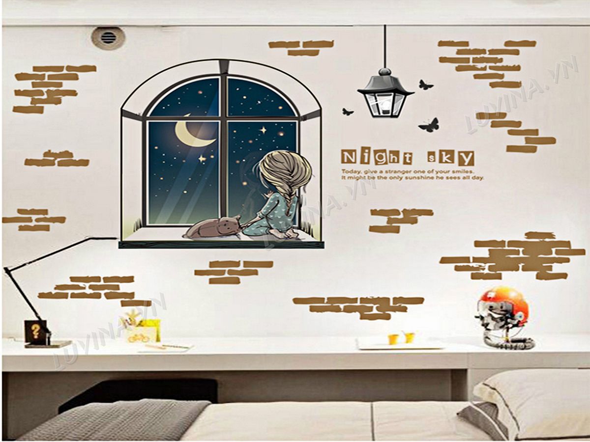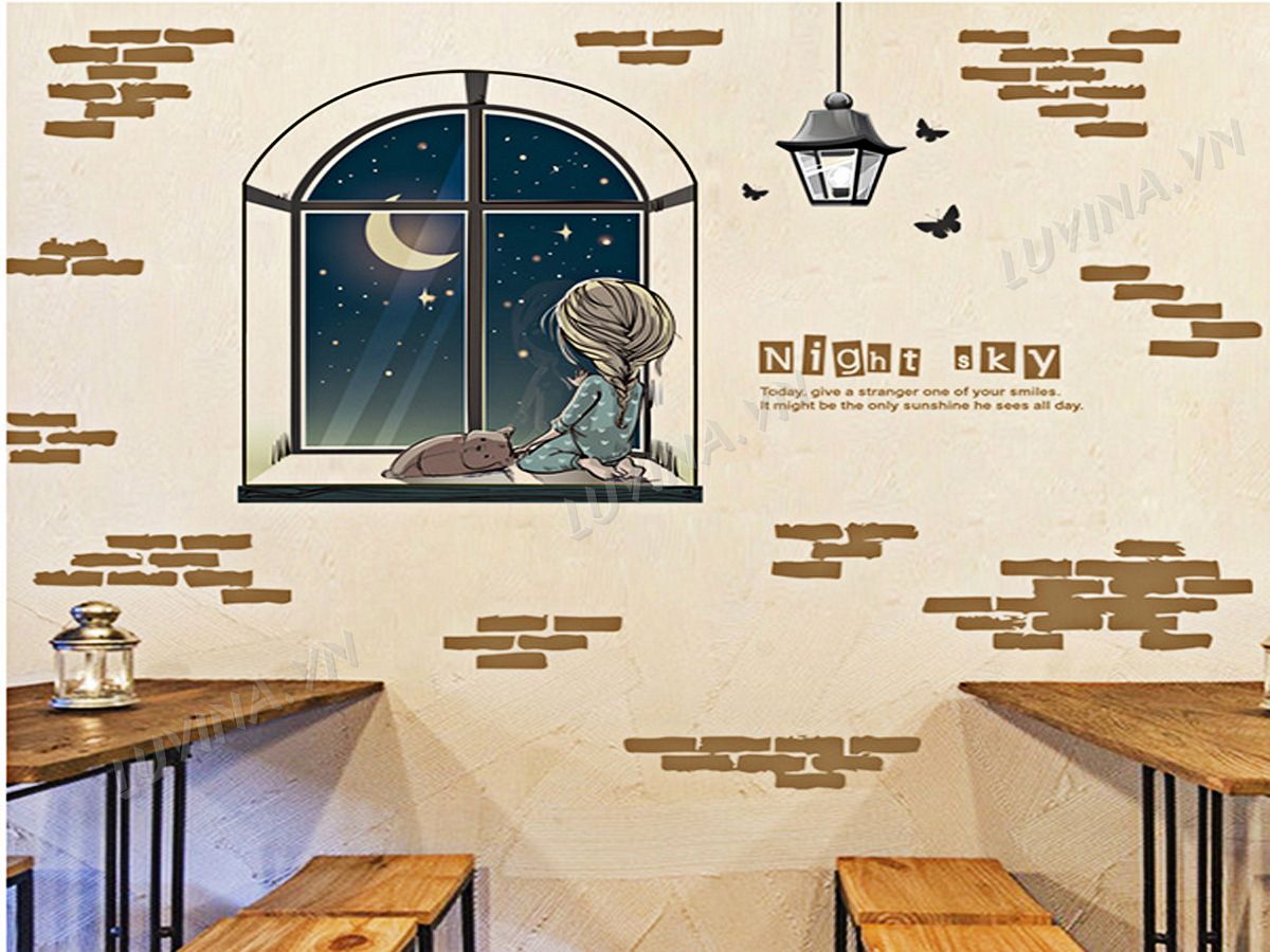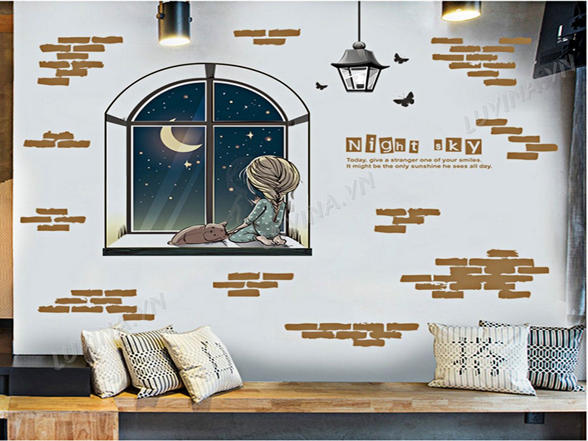 DECAL TRANG TRÍ CÔ GÁI NGẮM TRĂNG