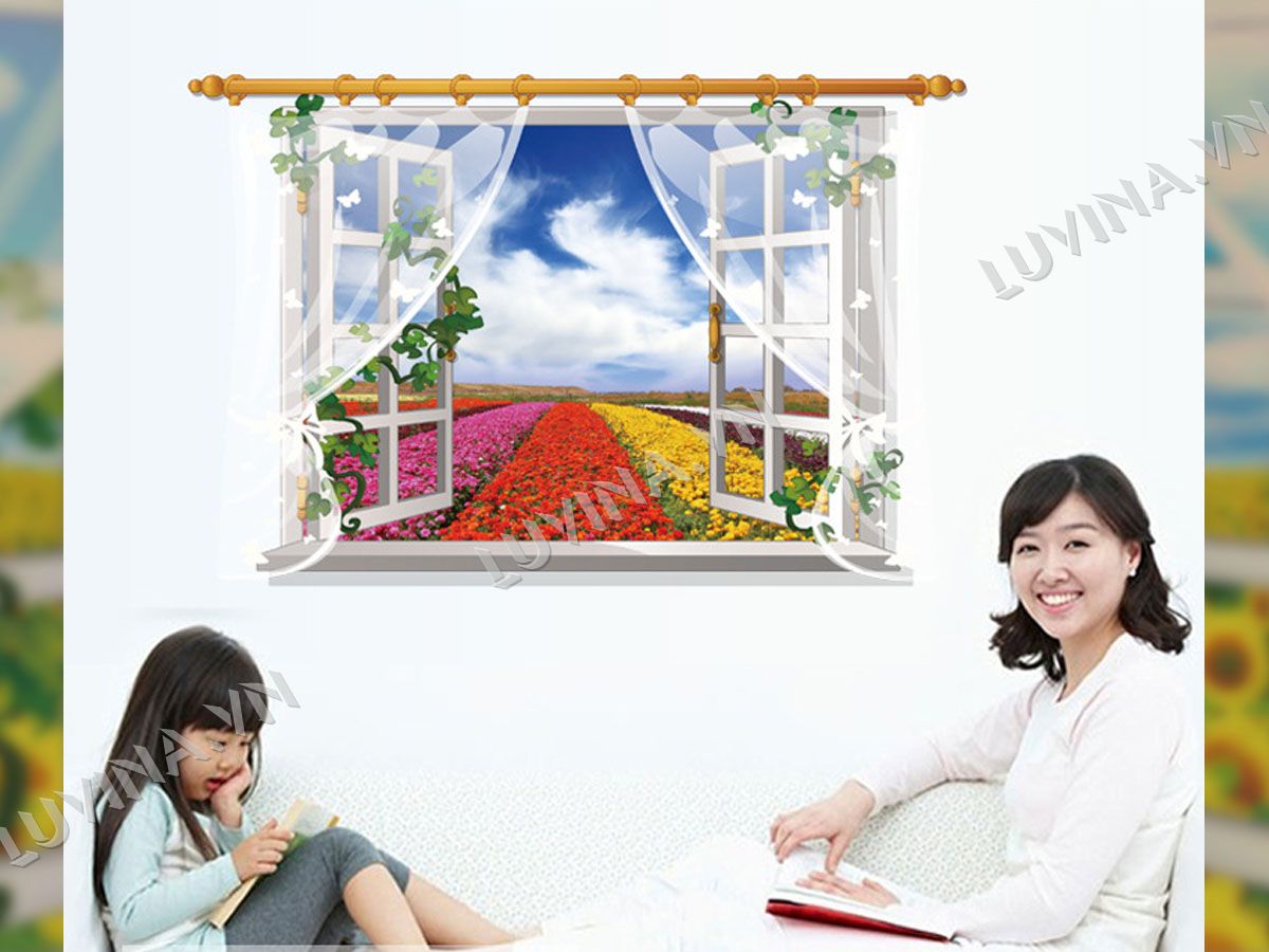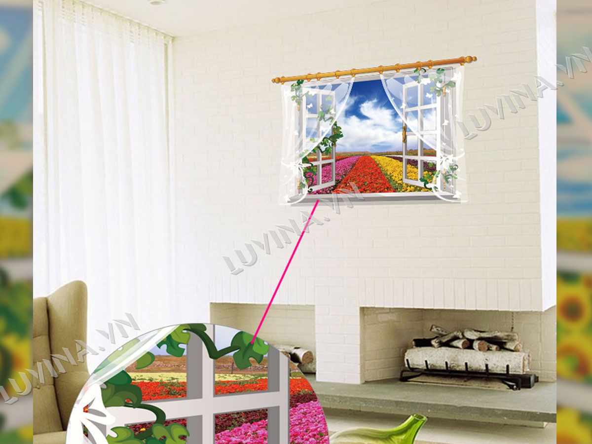DECAL TRANG TRÍ CỬA SỔ LUỐNG HOA