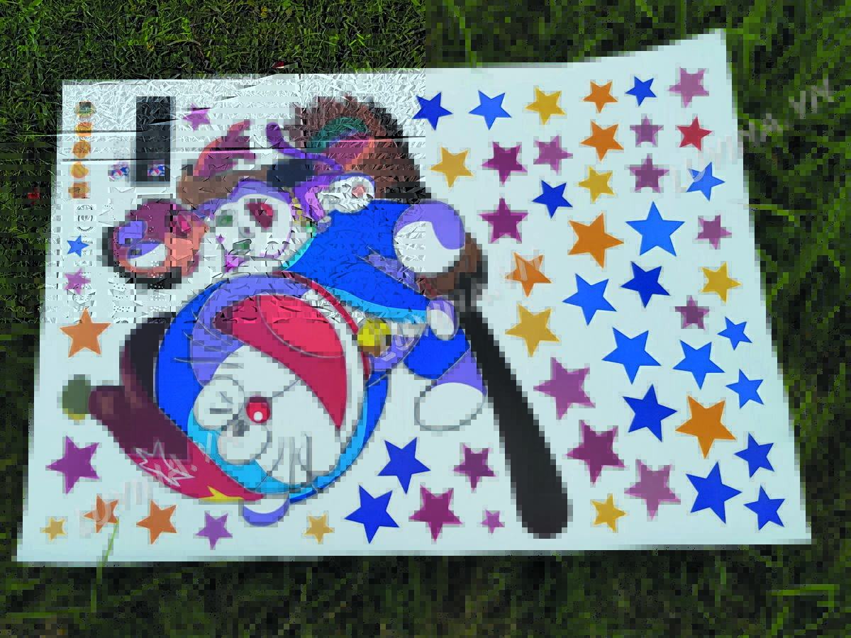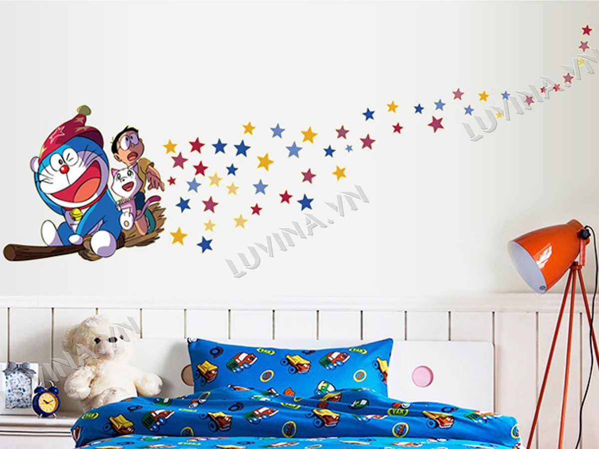 DECAL TRANG TRÍ DẠ QUANG ĐÔ-RÊ-MON CƯỠI CHỔI