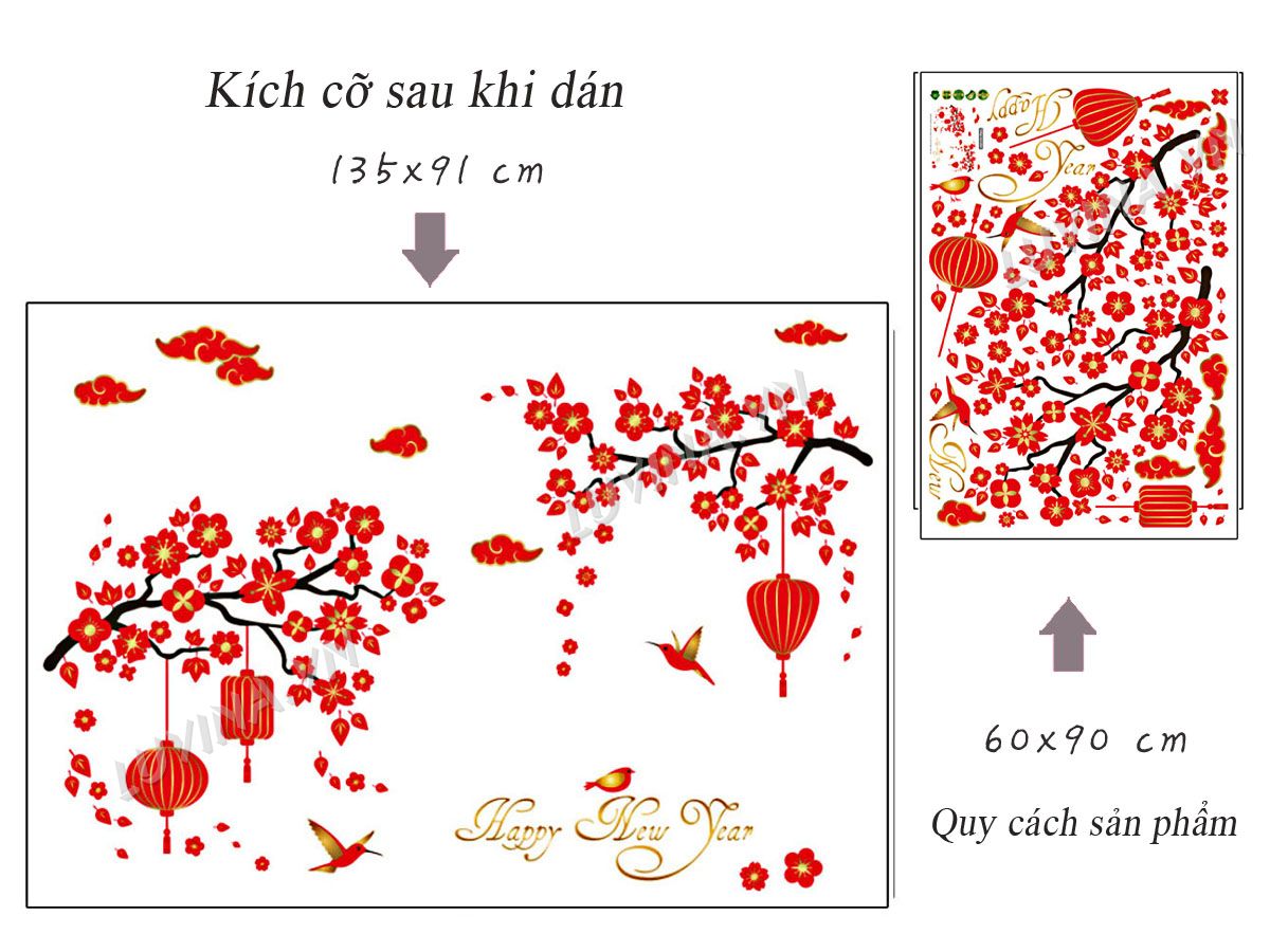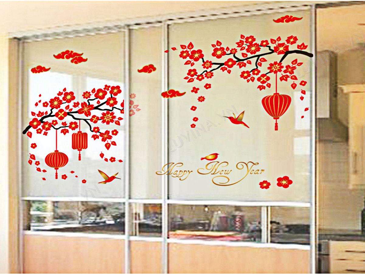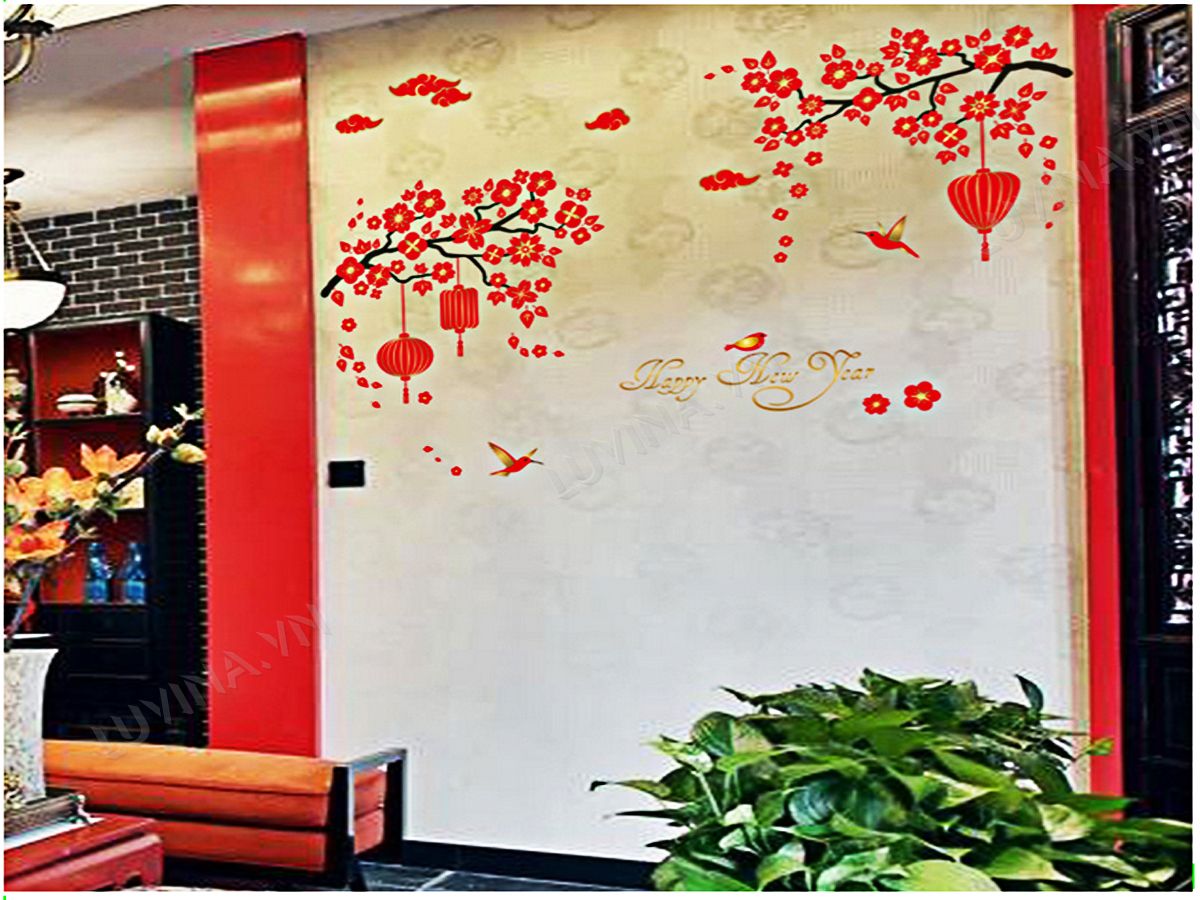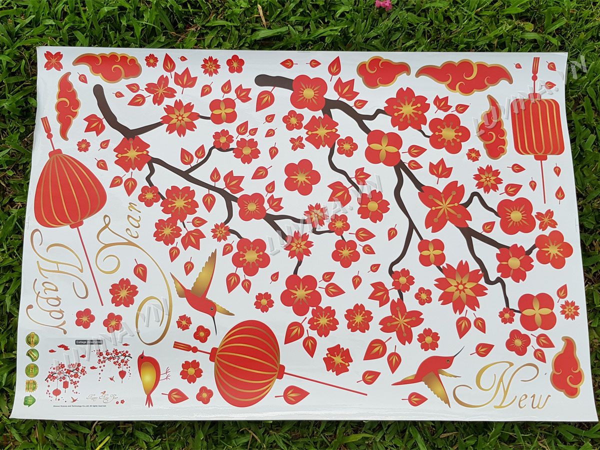 DECAL TRANG TRÍ ĐÀO ĐỎ TẾT