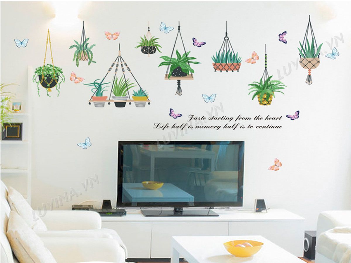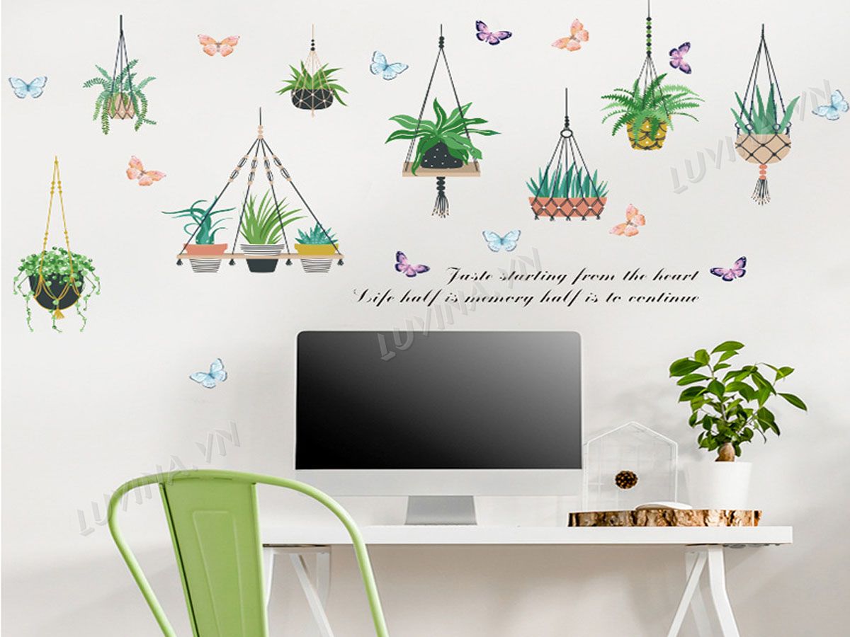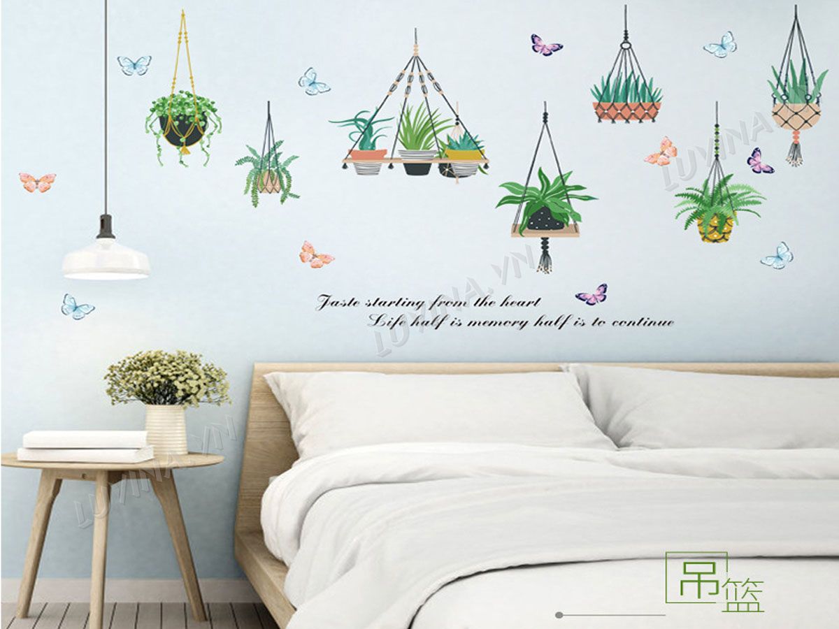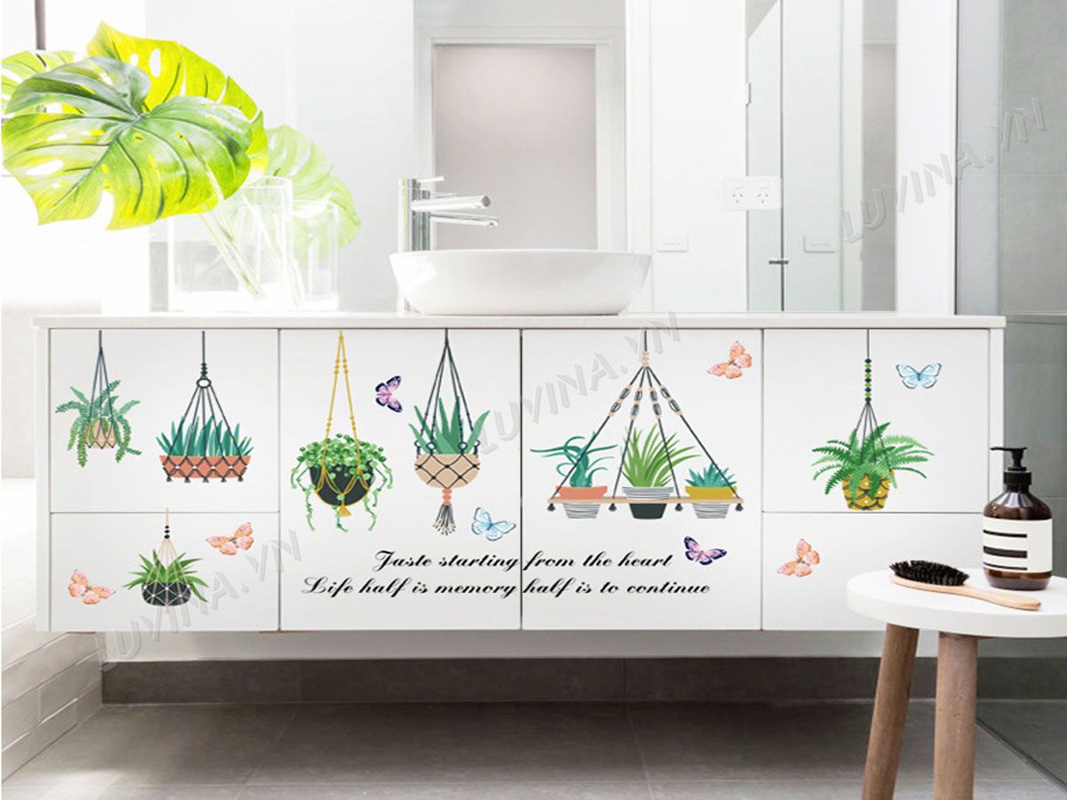 DECAL TRANG TRÍ GIỎ CÂY XANH