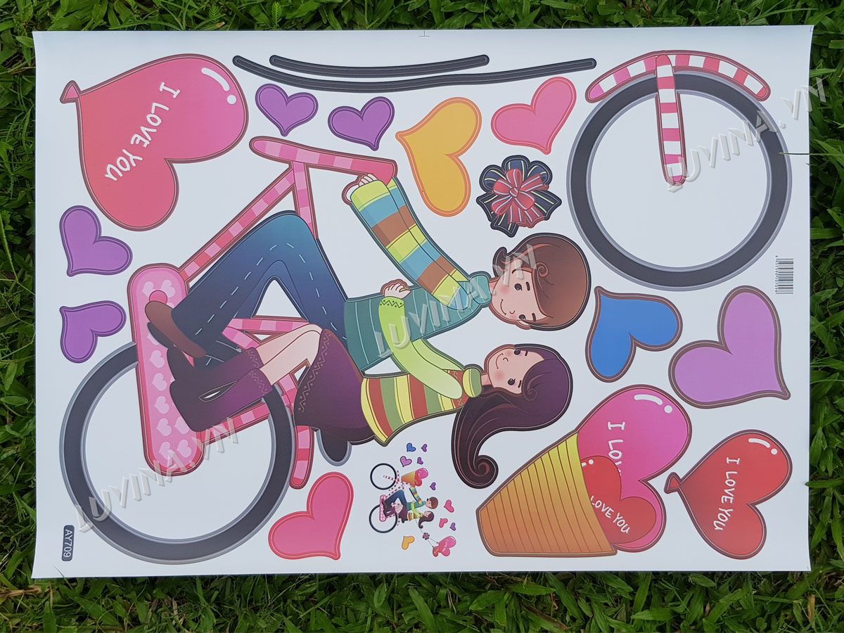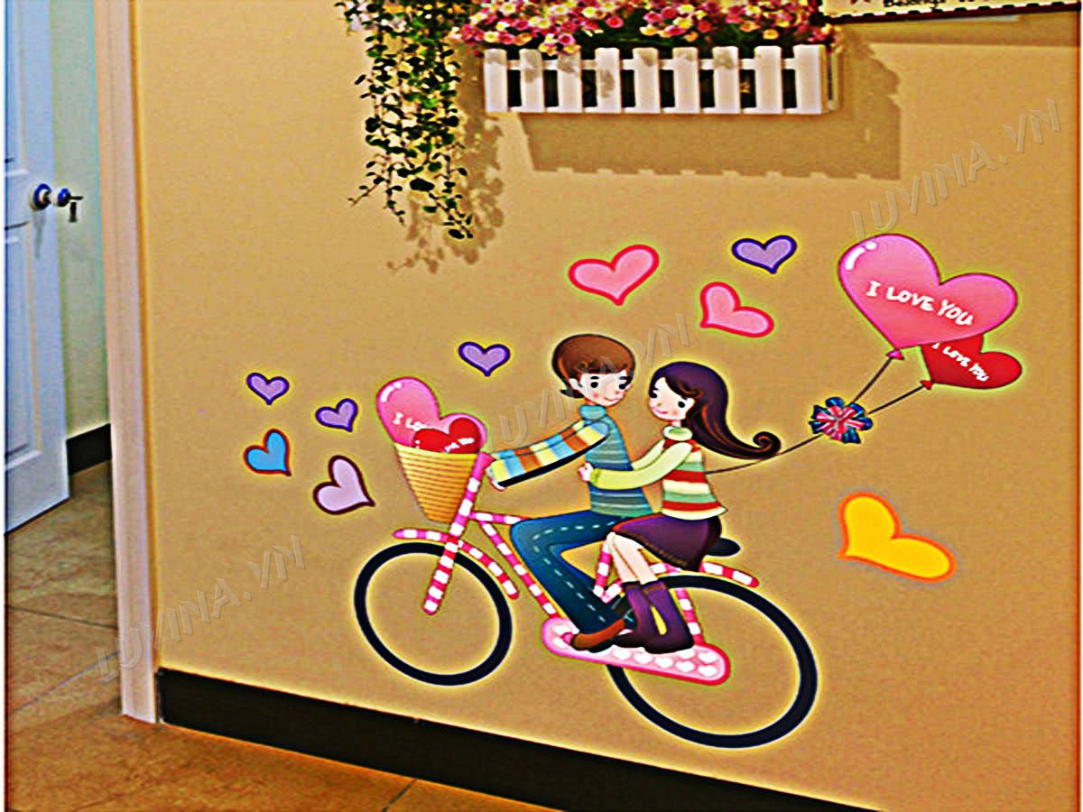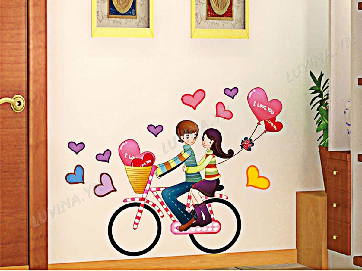 DECAL TRANG TRÍ HAI BÉ ĐẠP XE
