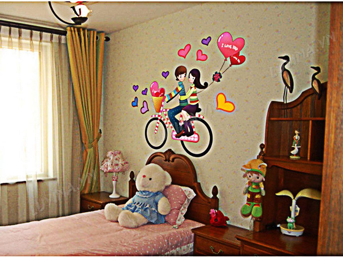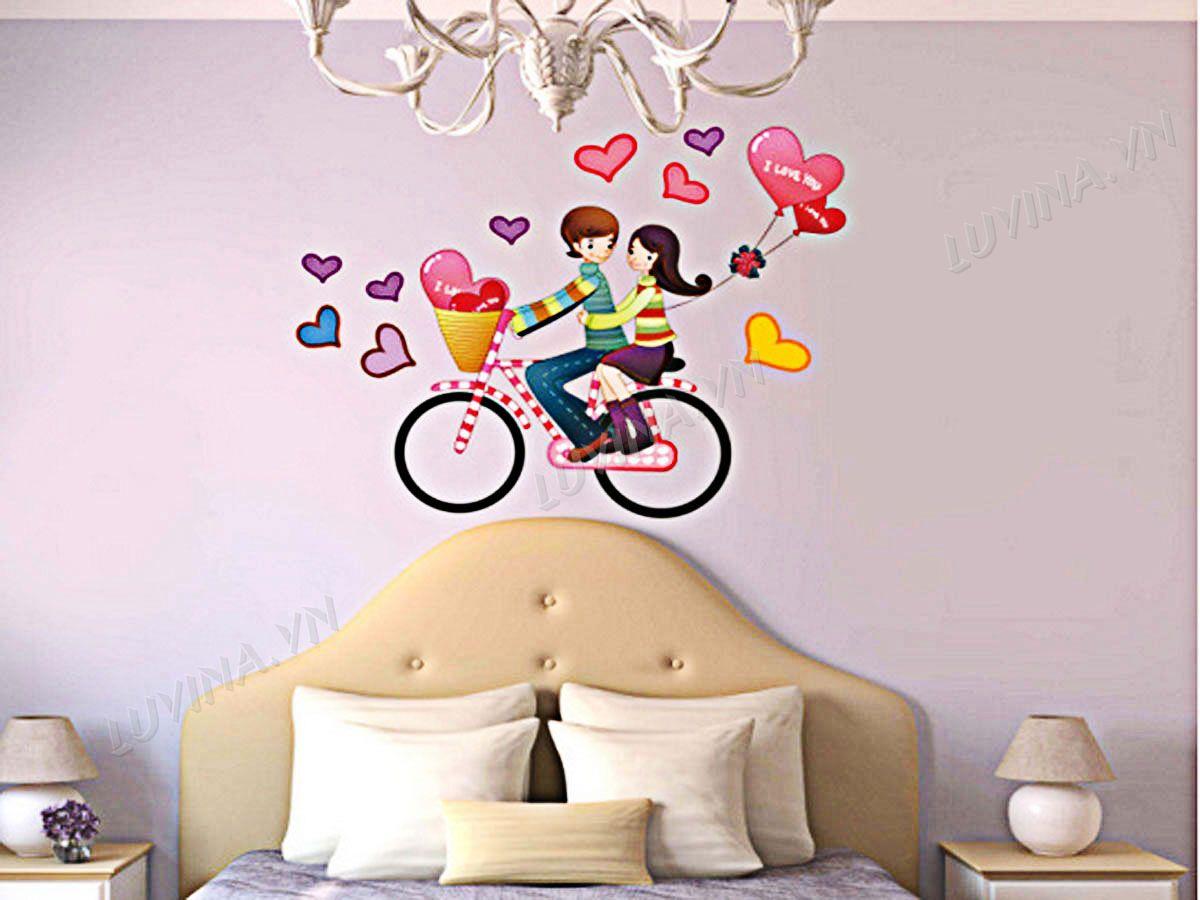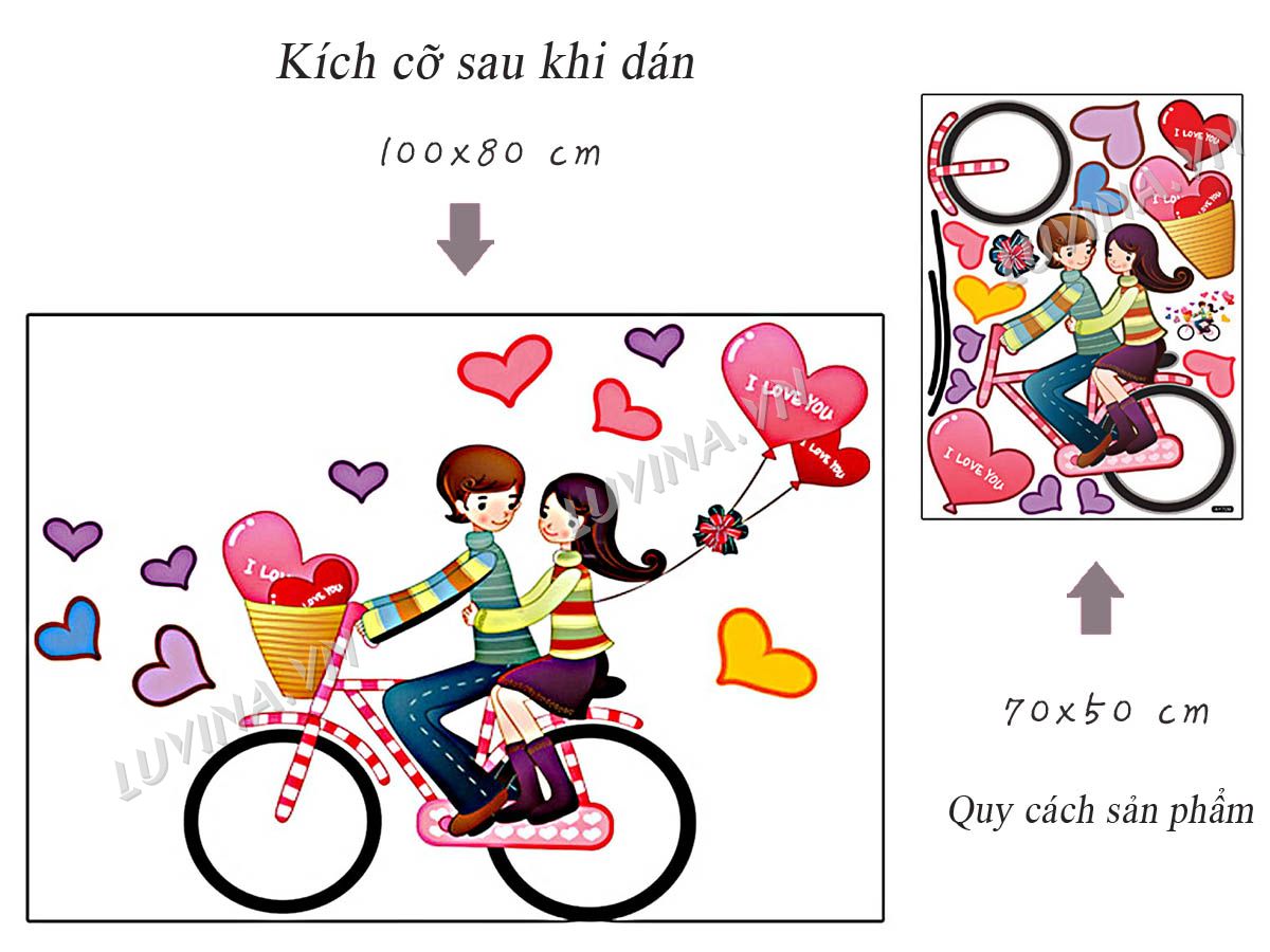 DECAL TRANG TRÍ HAI BÉ ĐẠP XE