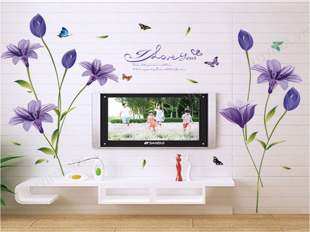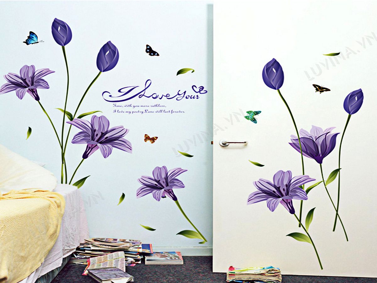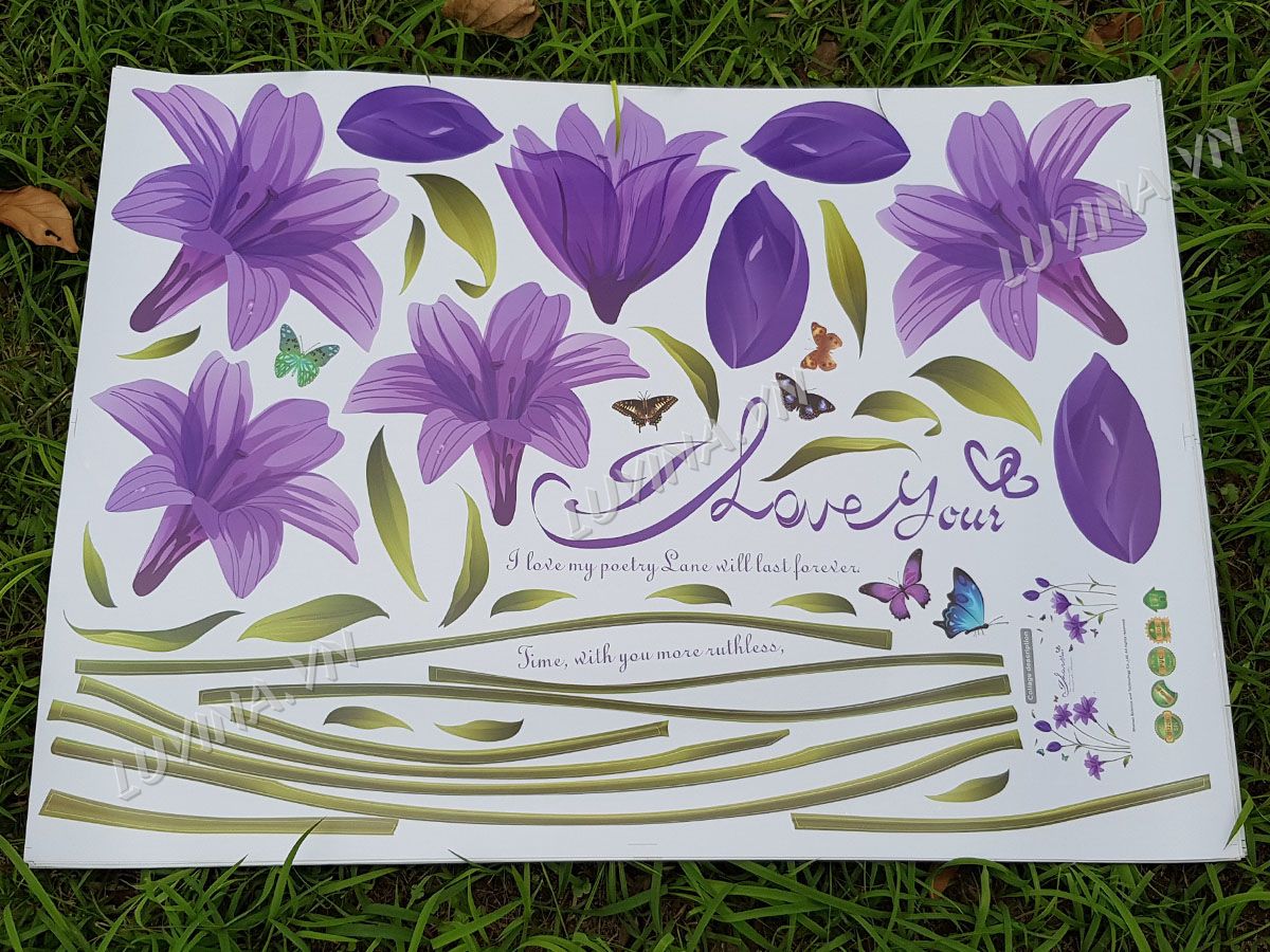DECAL TRANG TRÍ HOA BÁCH HỢP TÍM