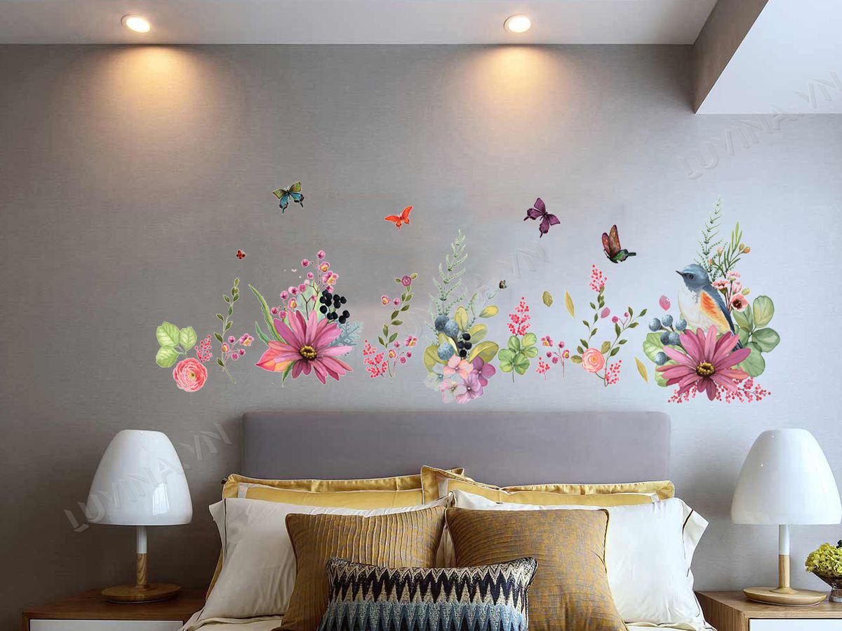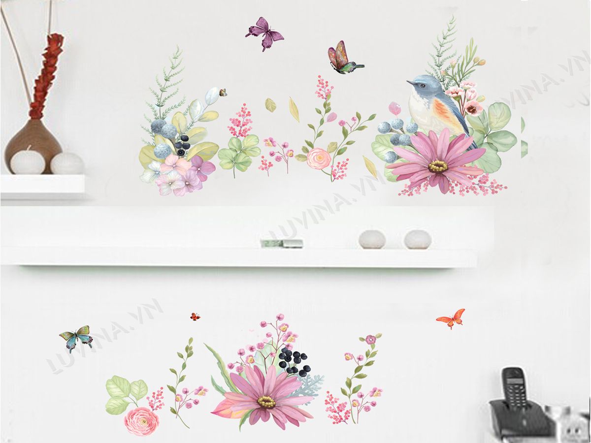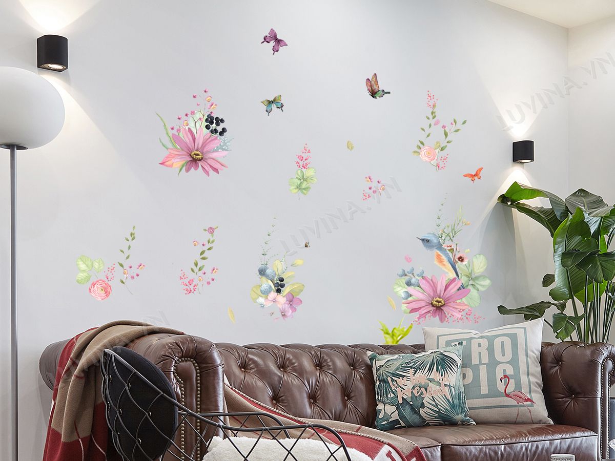 DECAL TRANG TRÍ HOA CỎ HỒNG