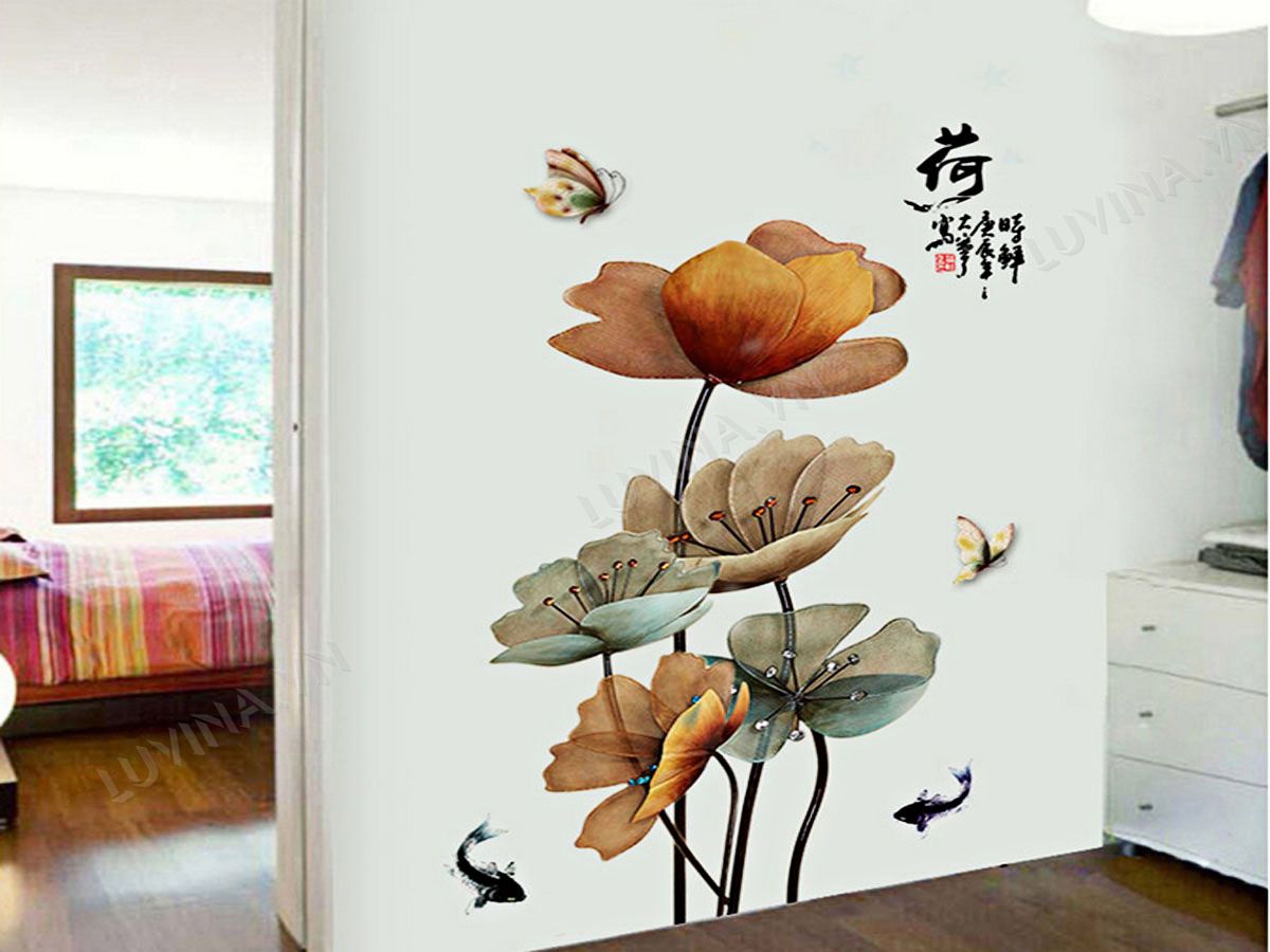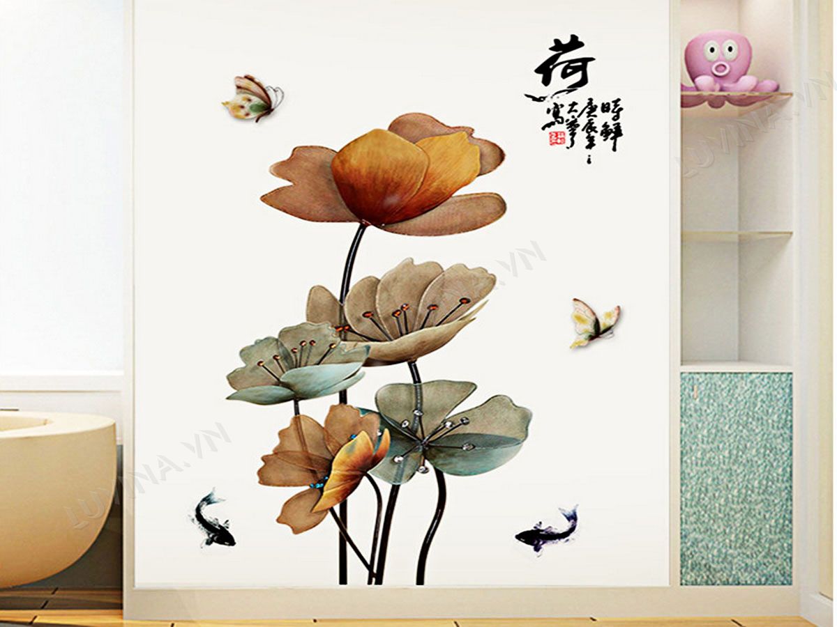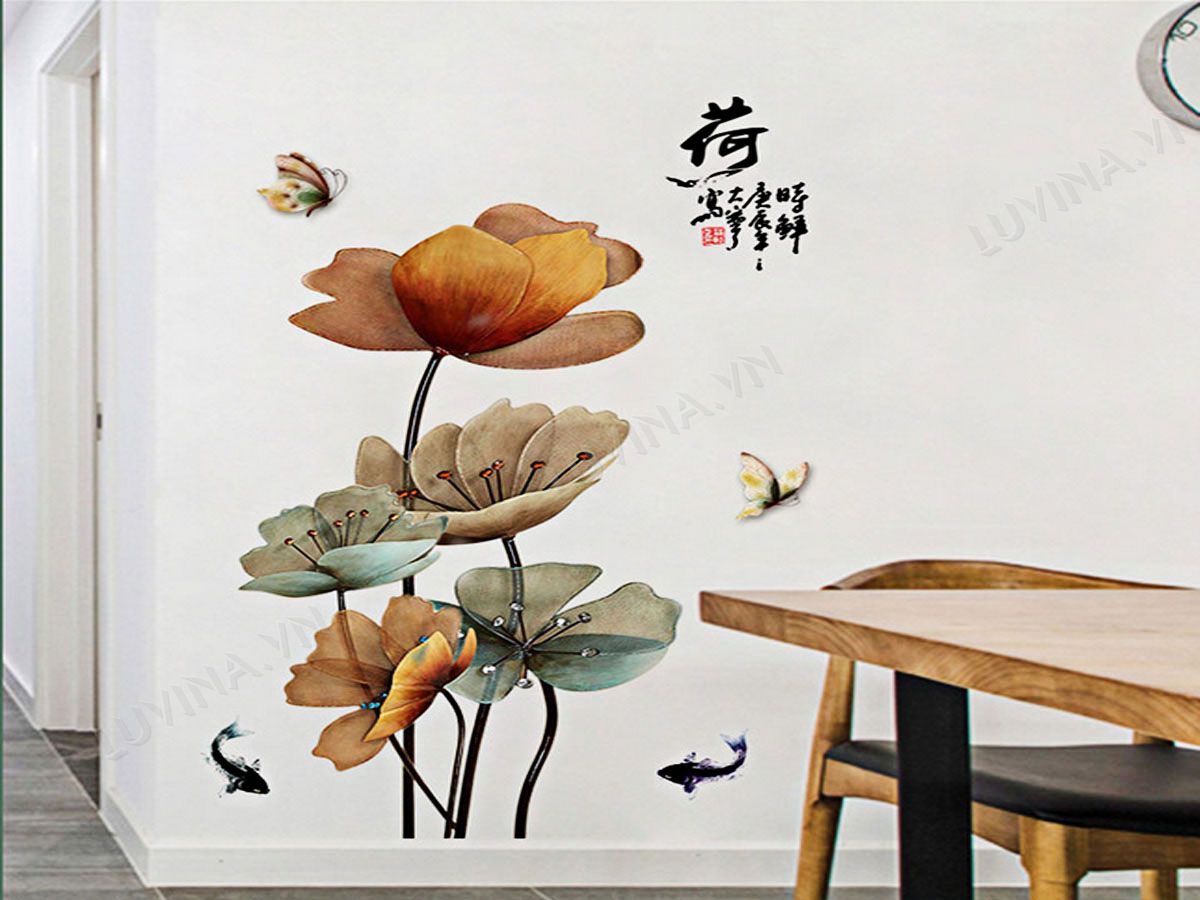 DECAL TRANG TRÍ HOA LÁ NÂU