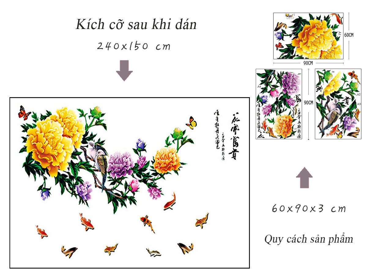 CHIỀU CAO, RỘNG CỦA BỨC TRANH SAU KHI DÁN MỜI THAM KHẢO ẢNH DƯỚI