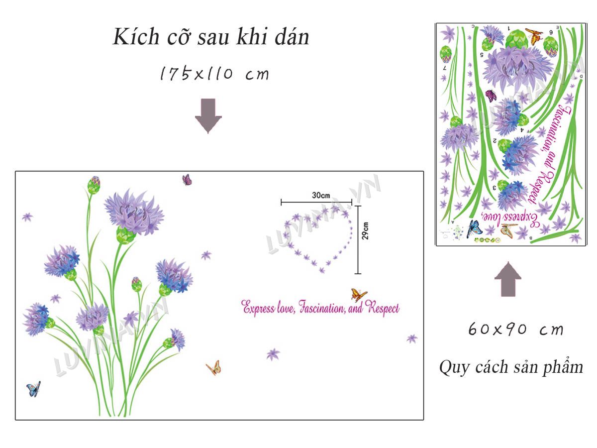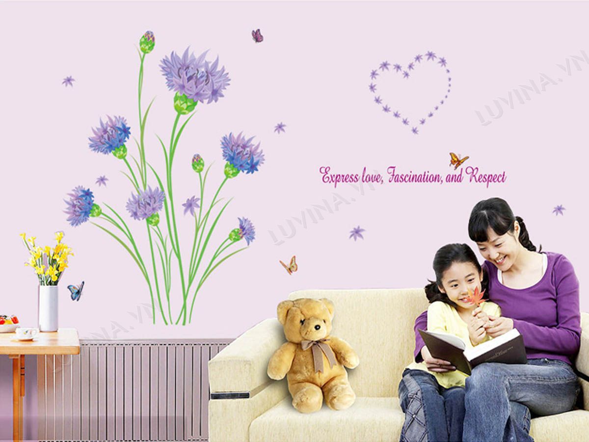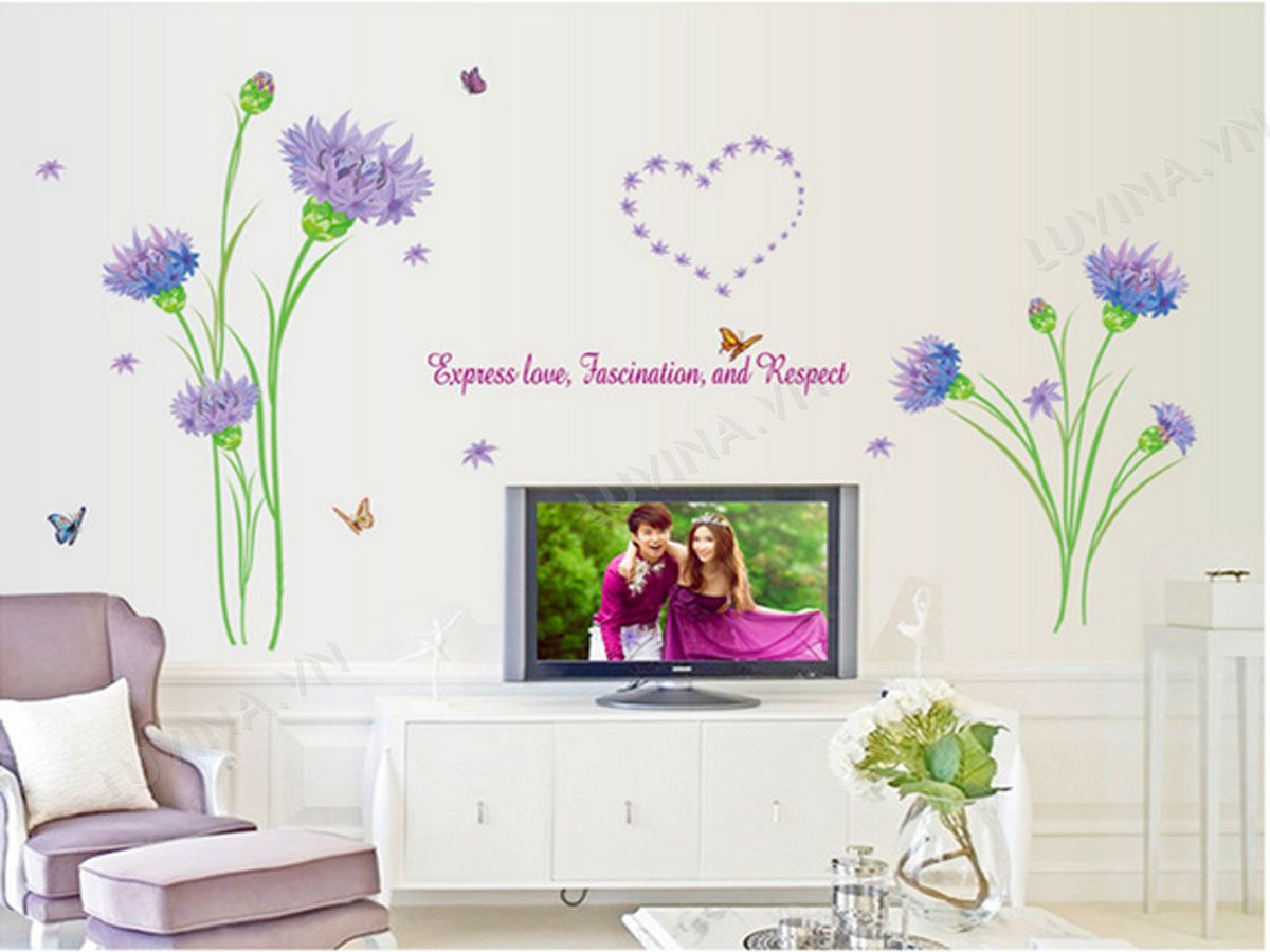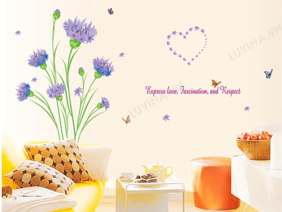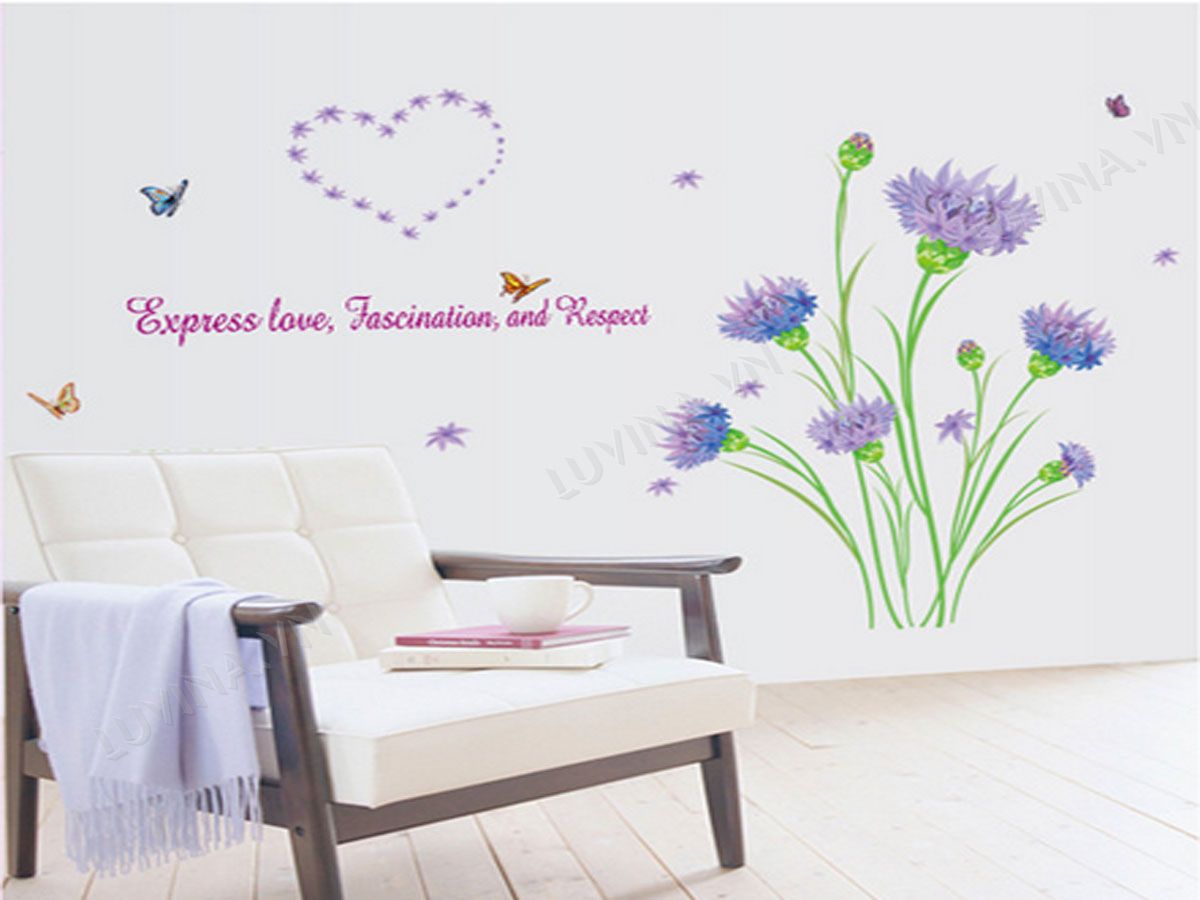 DECAL TRANG TRÍ HOA PHĂNG TÍM