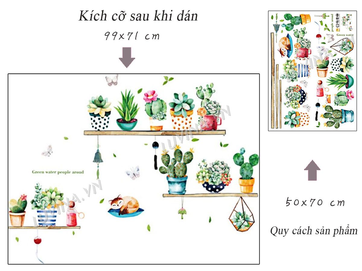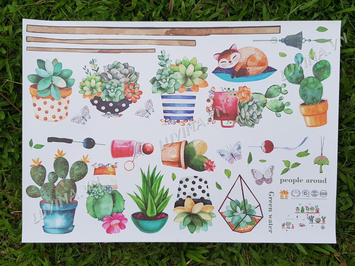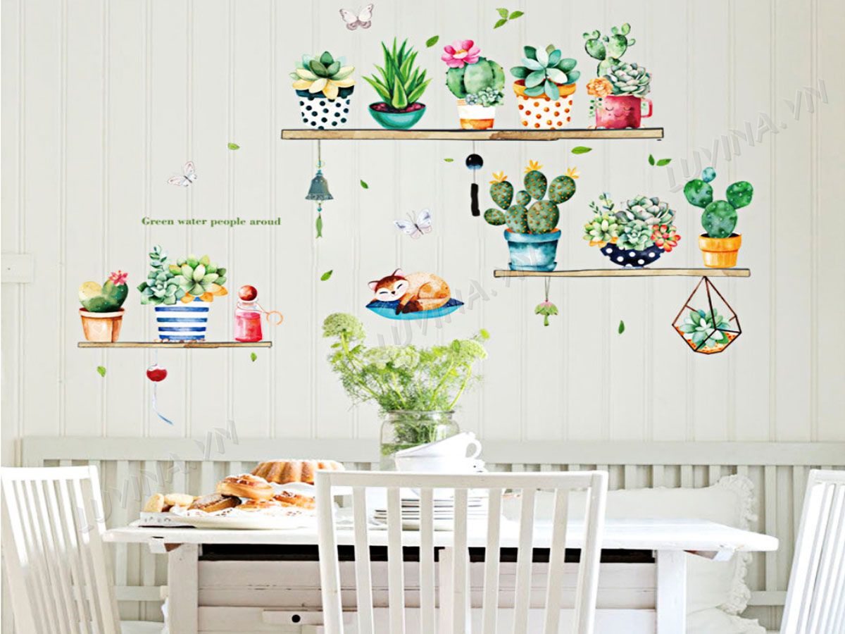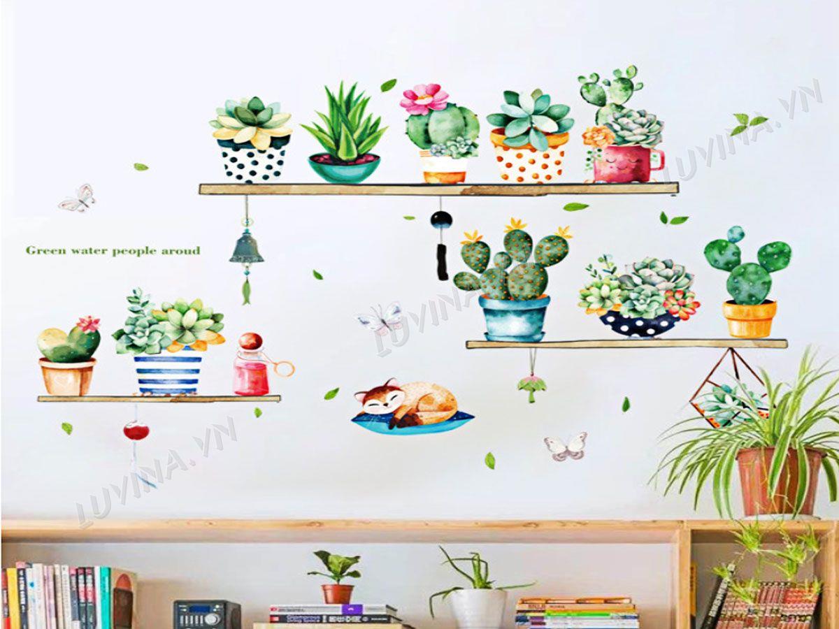 DECAL TRANG TRÍ KỆ CÂY CẢNH VÀ CON MÈO