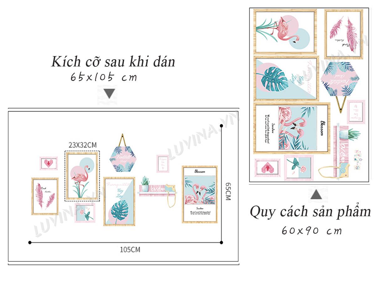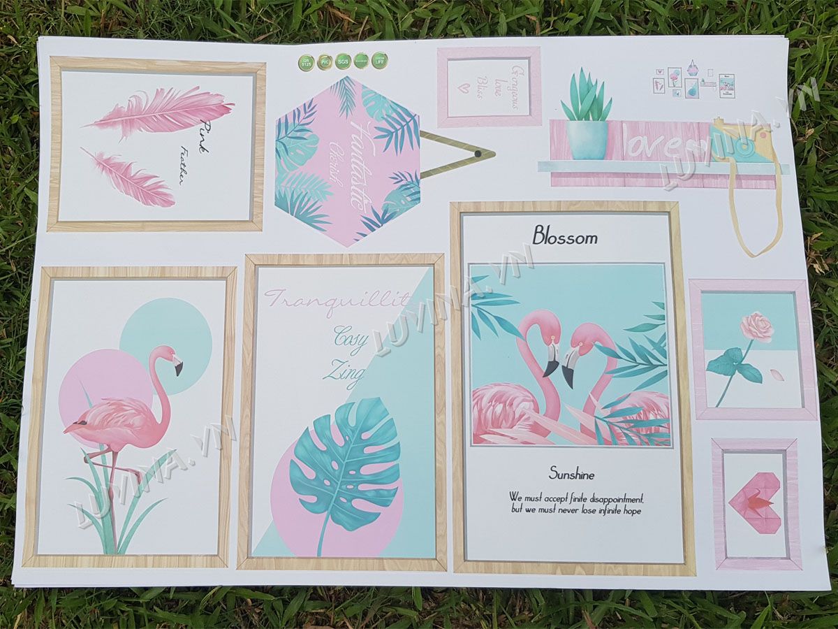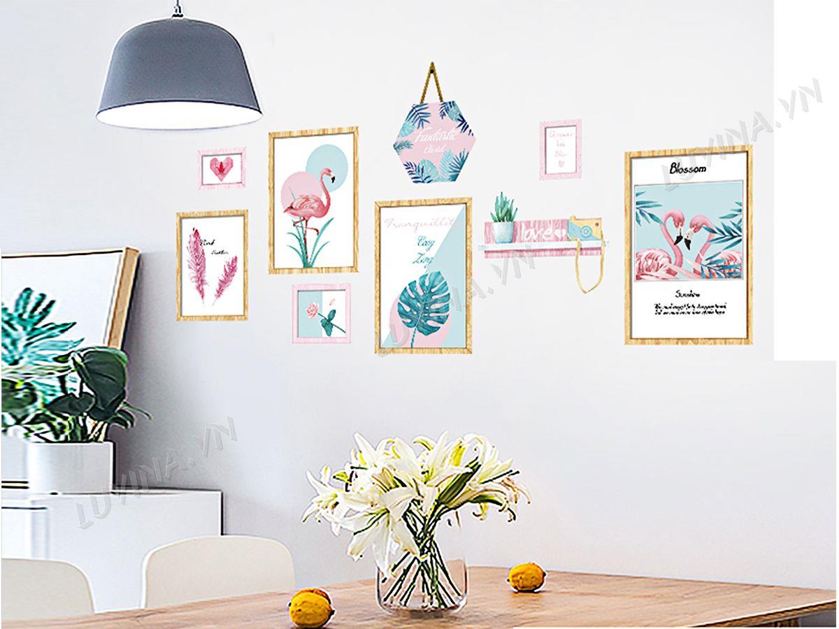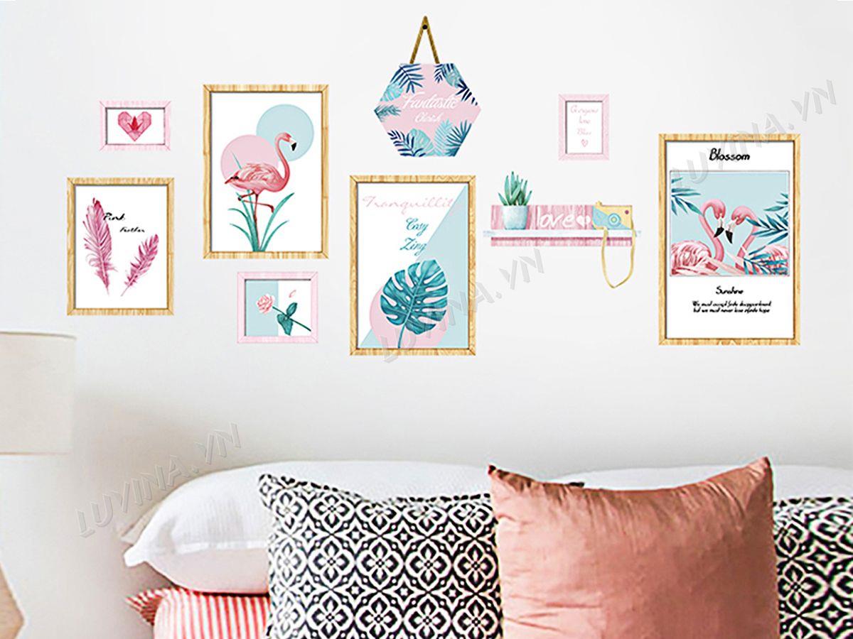 DECAL TRANG TRÍ KHUNG ẢNH HẠC HỒNG LÁ XANH