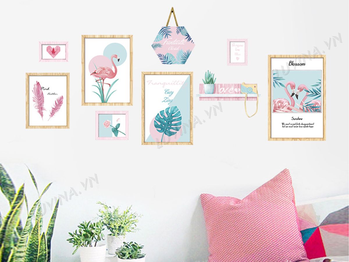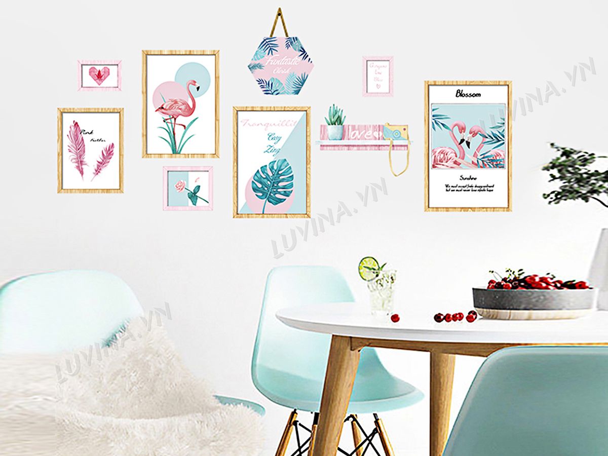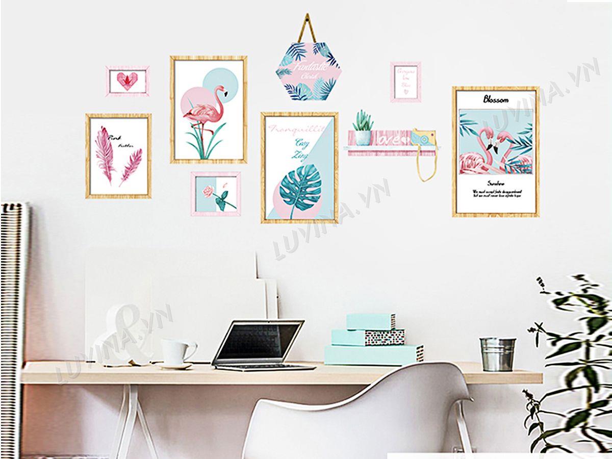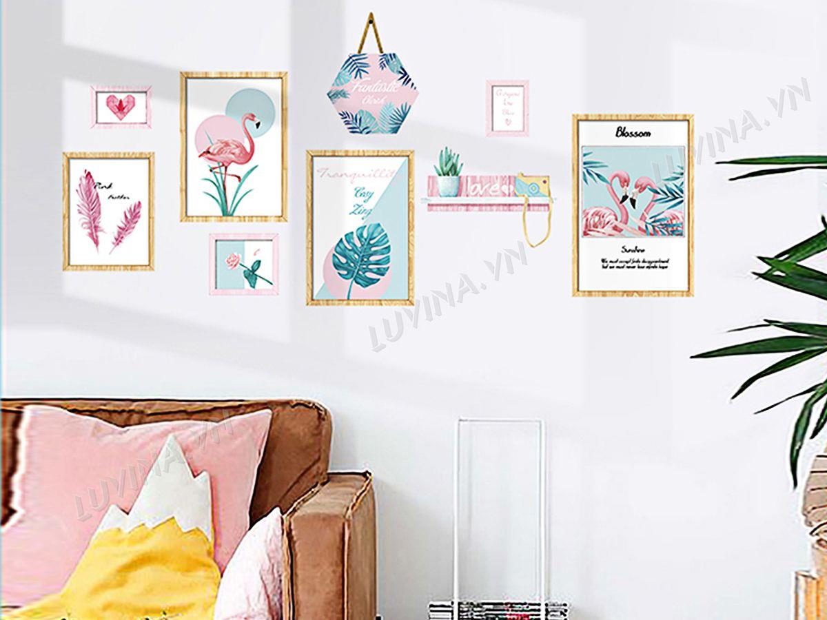 DECAL TRANG TRÍ KHUNG ẢNH HẠC HỒNG LÁ XANH