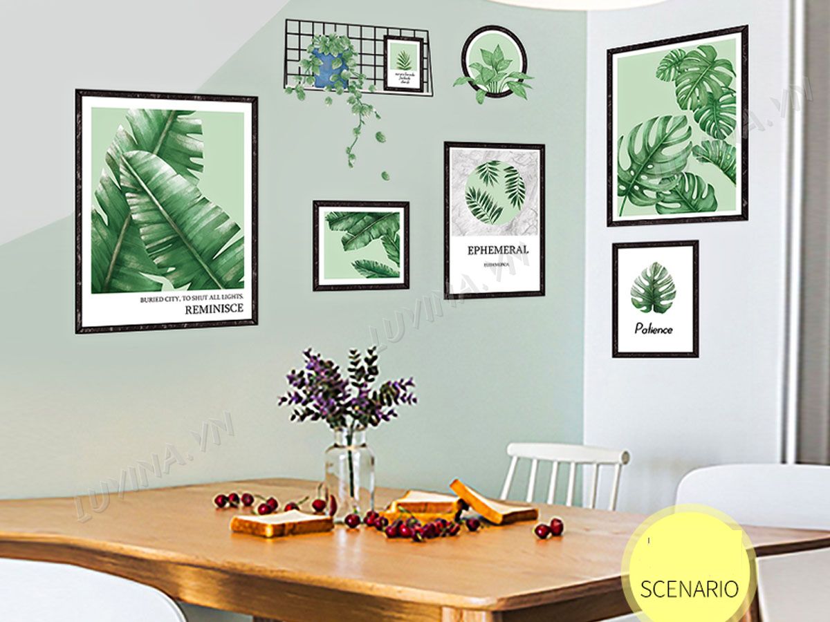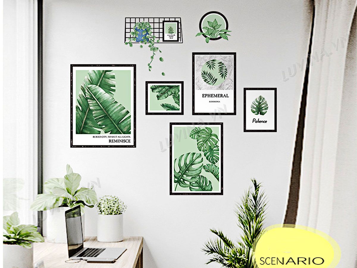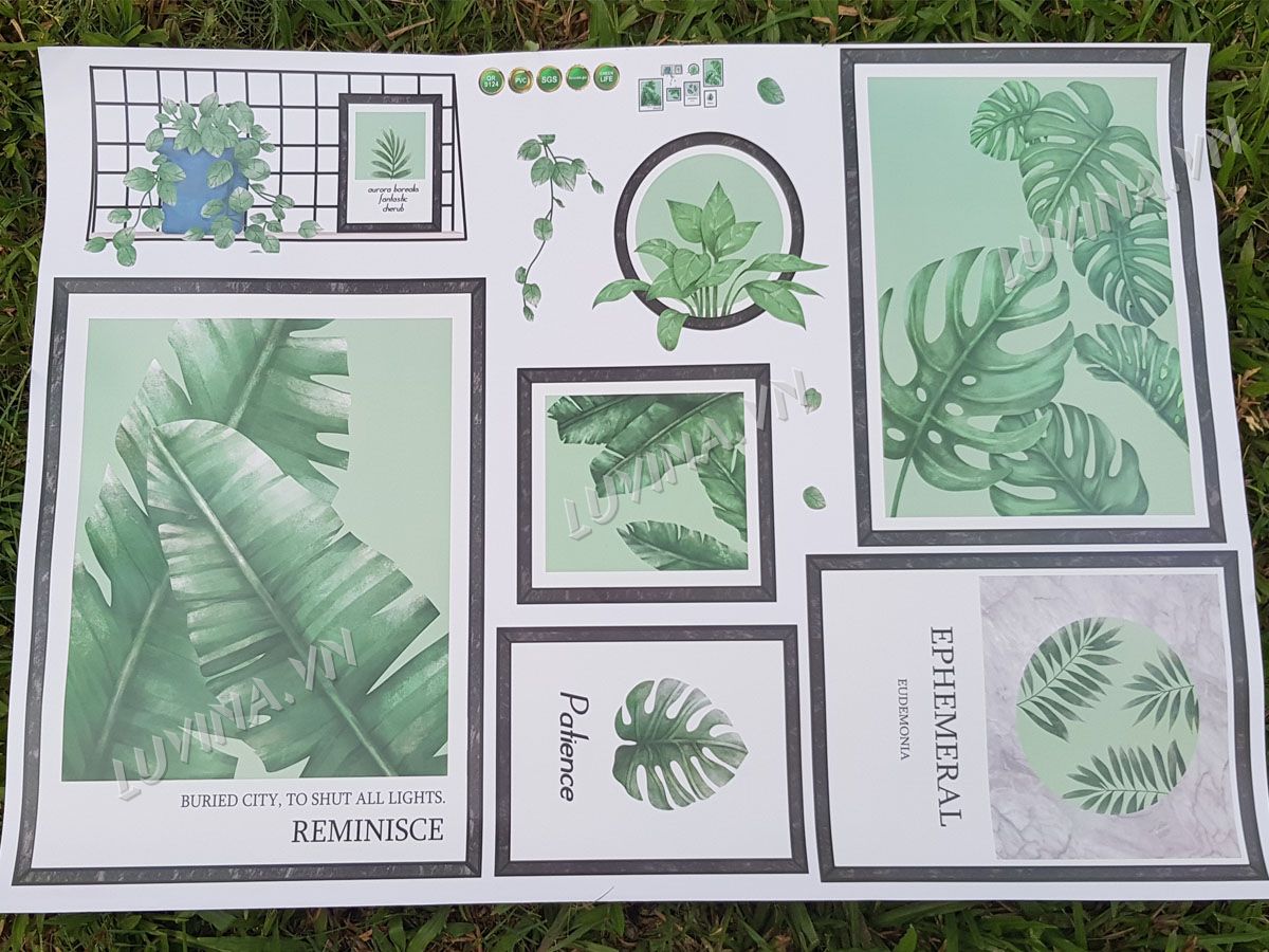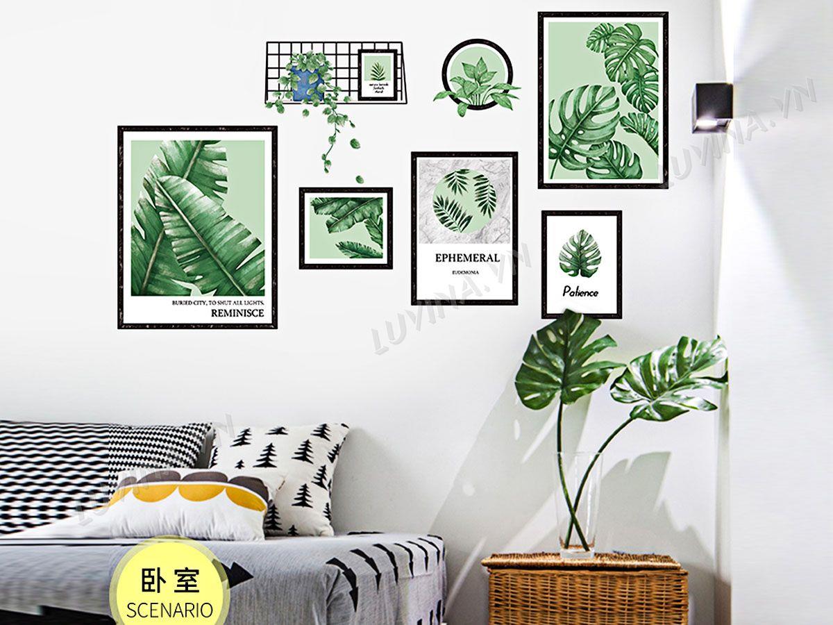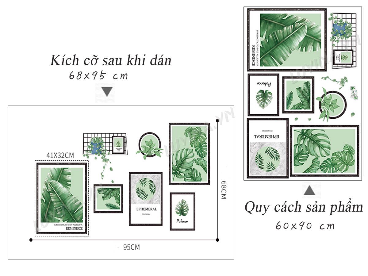 DECAL TRANG TRÍ KHUNG ẢNH LÁ XANH