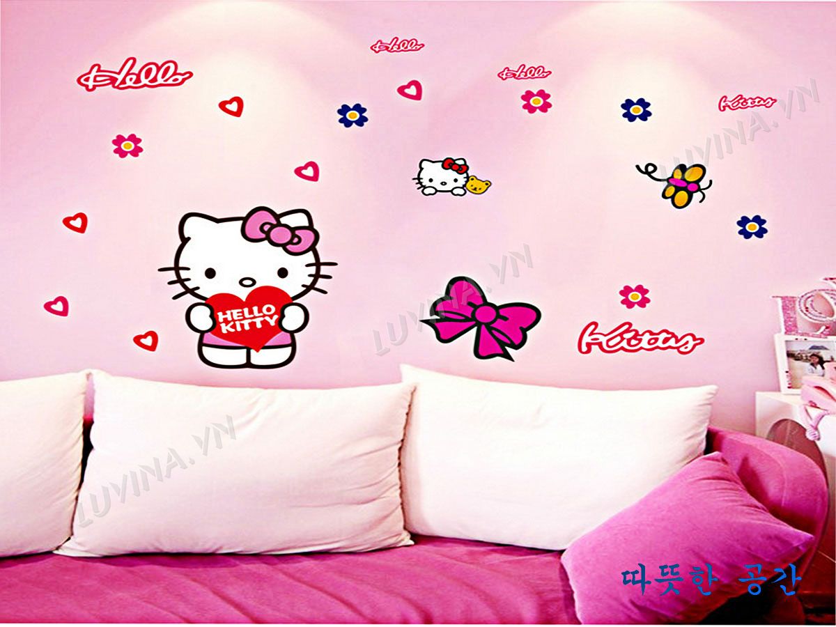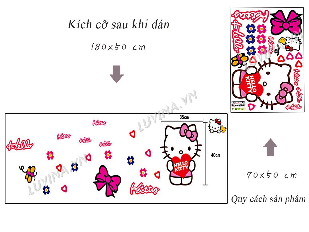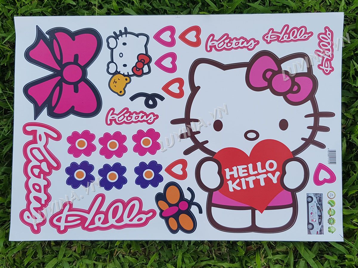 DECAL TRANG TRÍ KITTY NƠ HỒNG