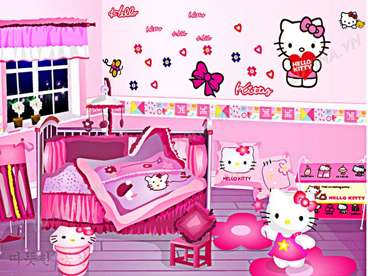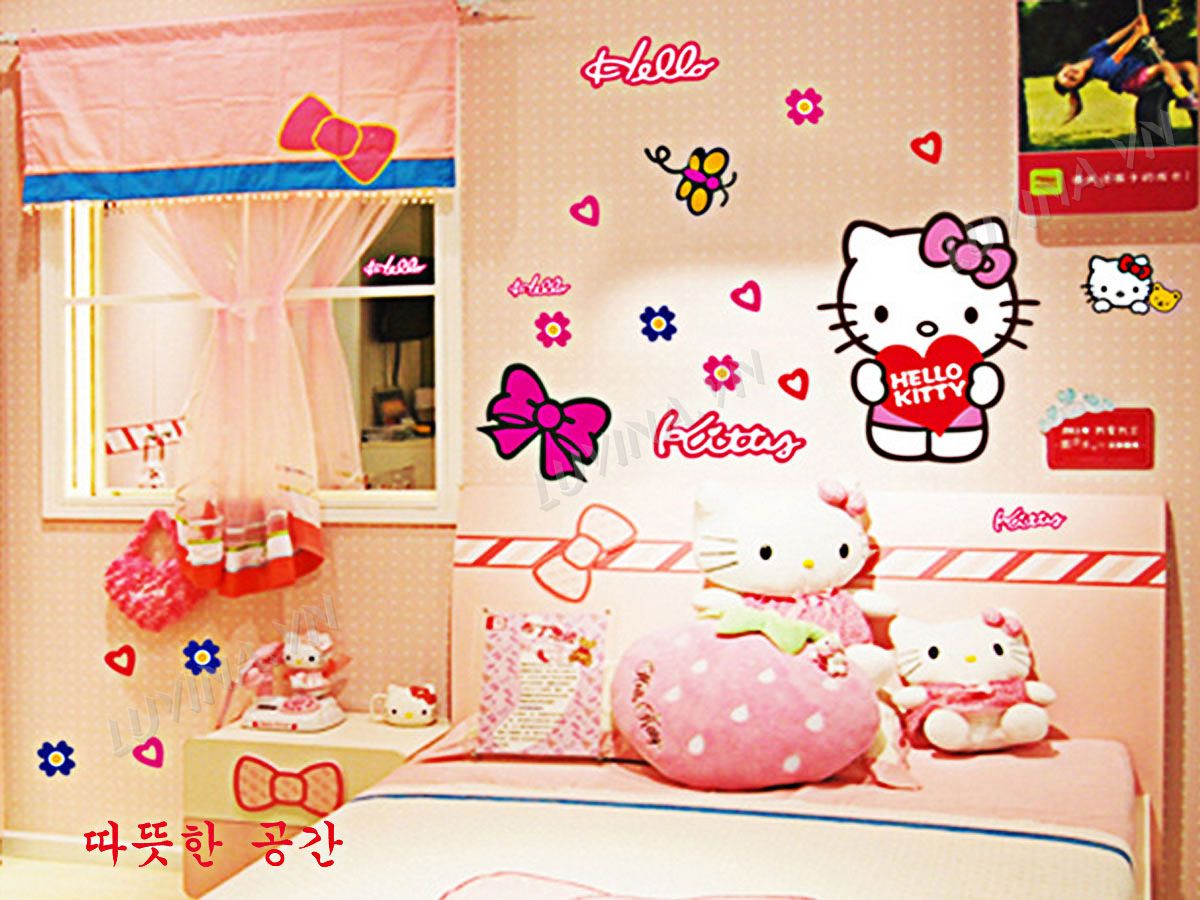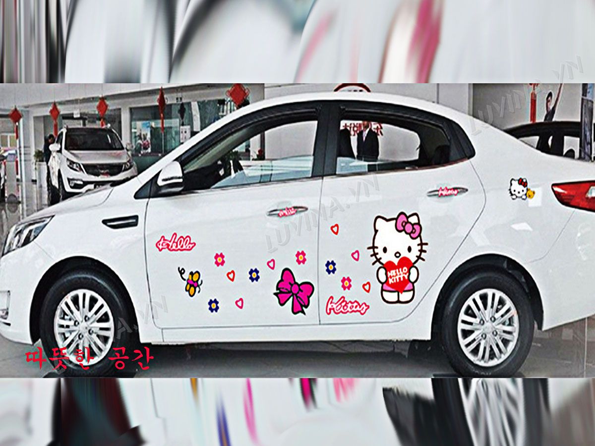 DECAL TRANG TRÍ KITTY NƠ HỒNG