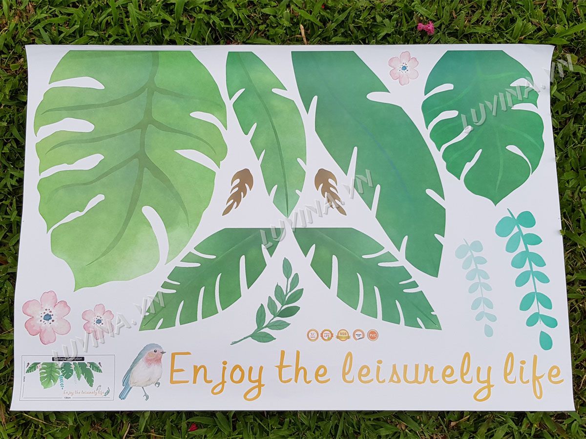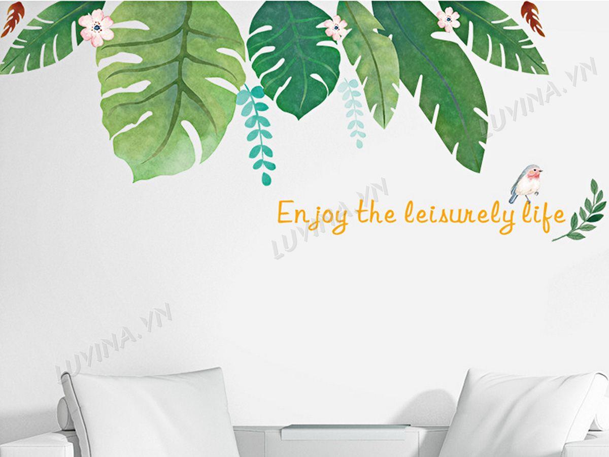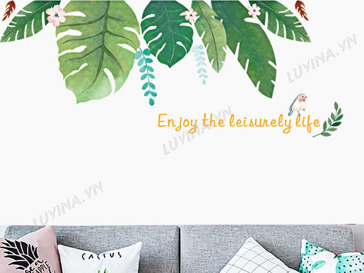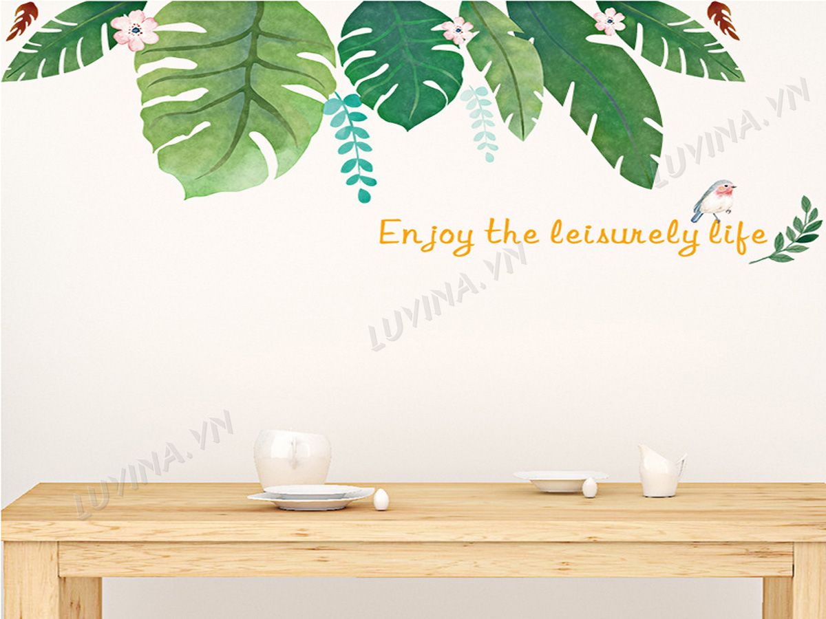 DECAL TRANG TRÍ LÁ NHIỆT ĐỚI CÓ HOA