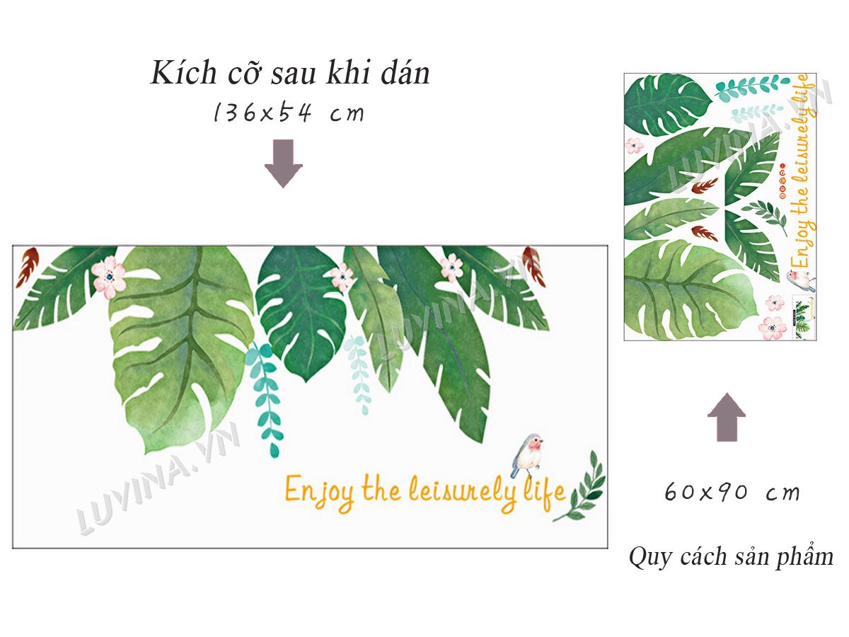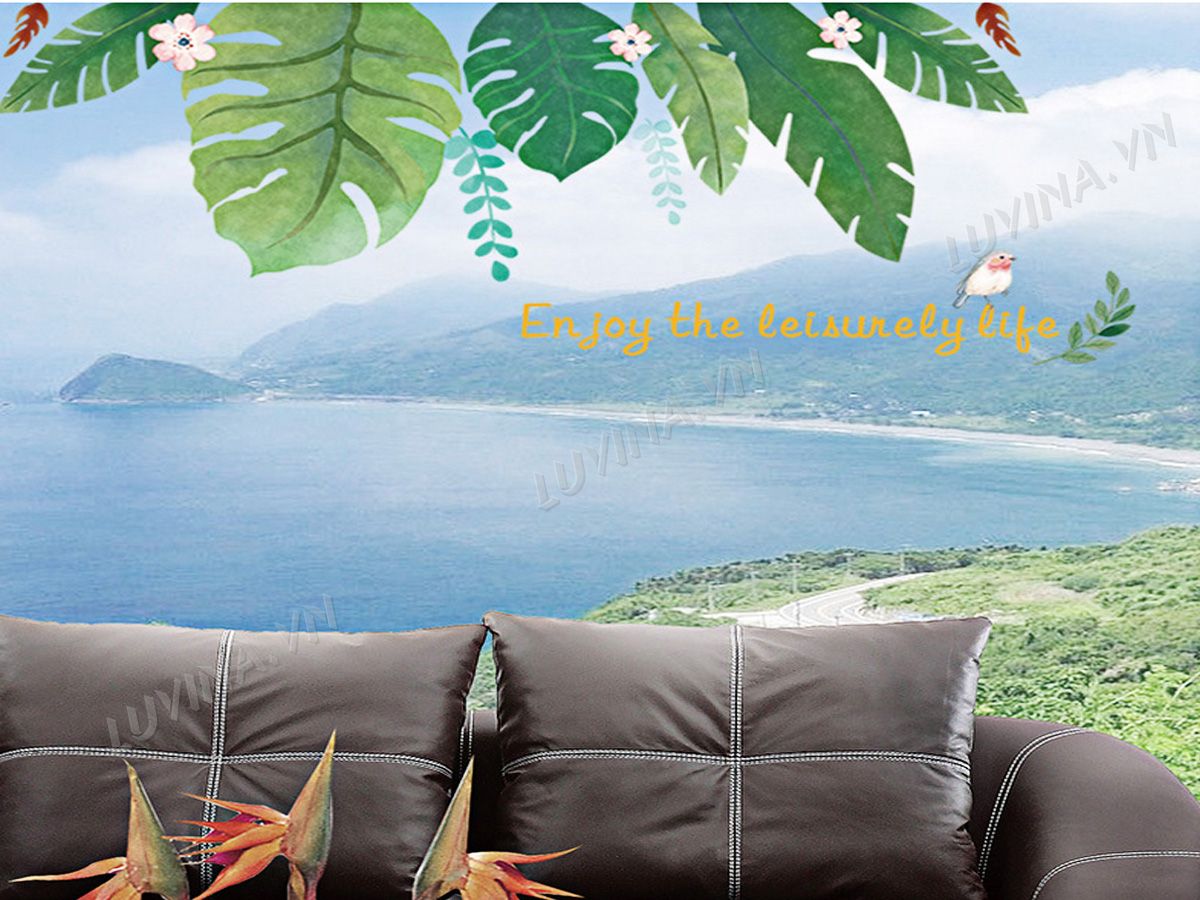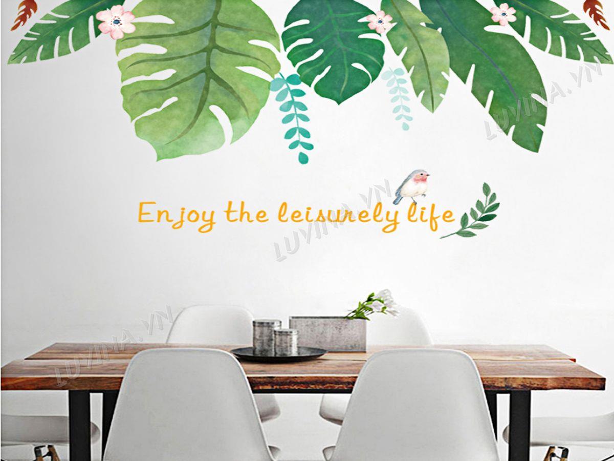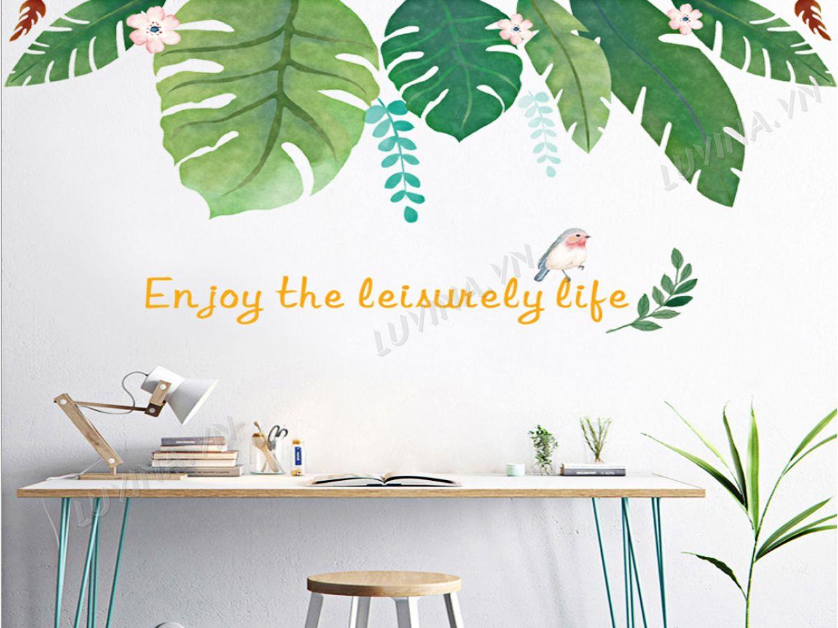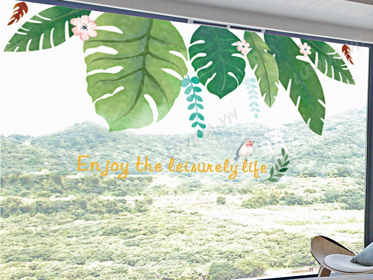 DECAL TRANG TRÍ LÁ NHIỆT ĐỚI CÓ HOA