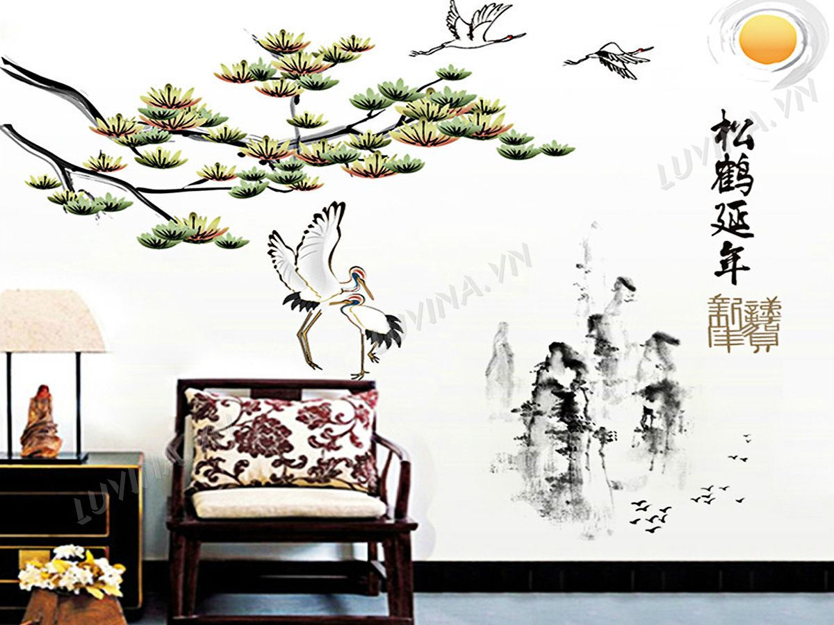 DECAL TRANG TRÍ PHONG THỦY CÒ TRẮNG