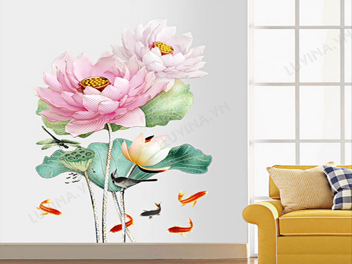 DECAL TRANG TRÍ SEN HỒNG NHẠT