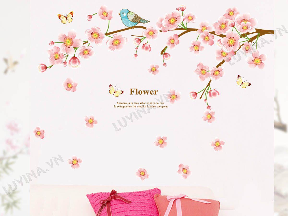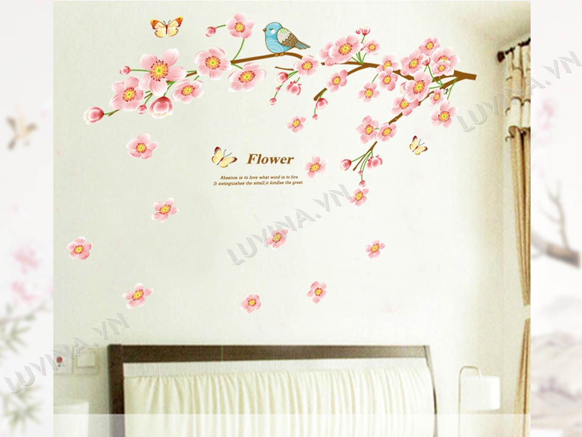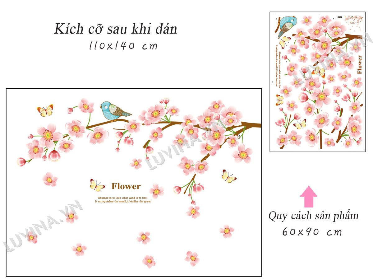 DECAL TRANG TRÍ TẾT CHIM XANH ĐẬU CÀNH ĐÀO