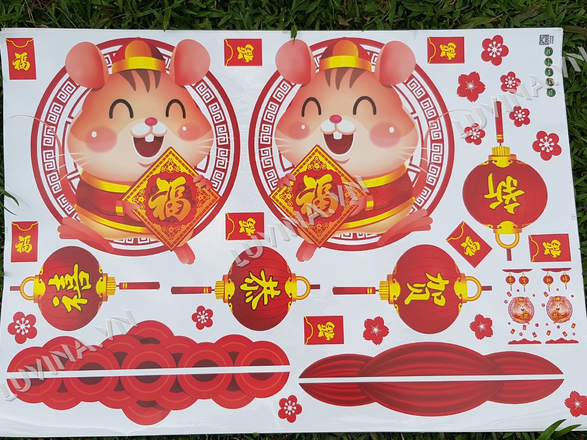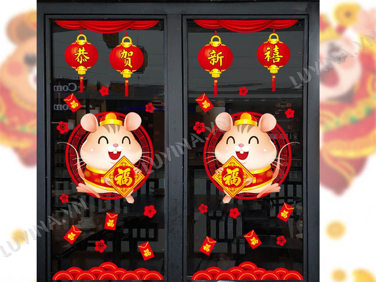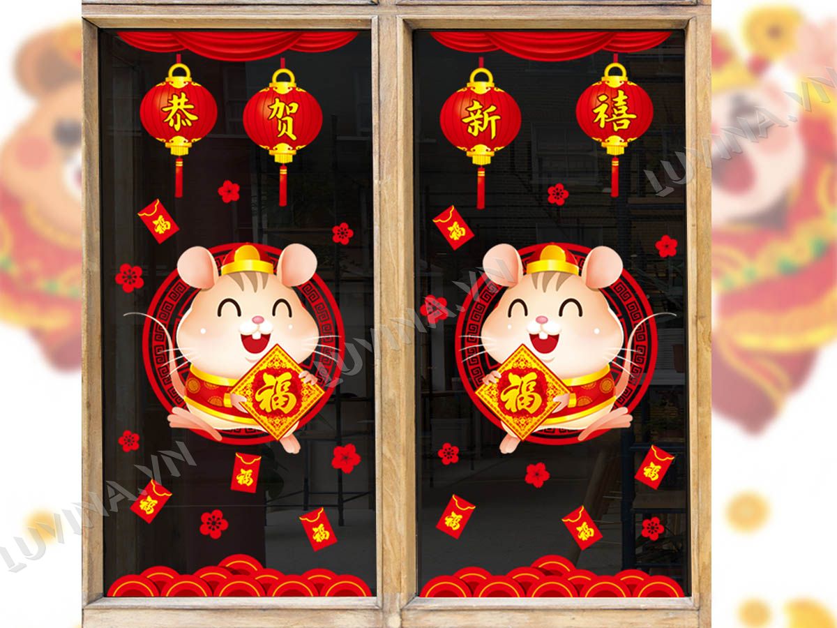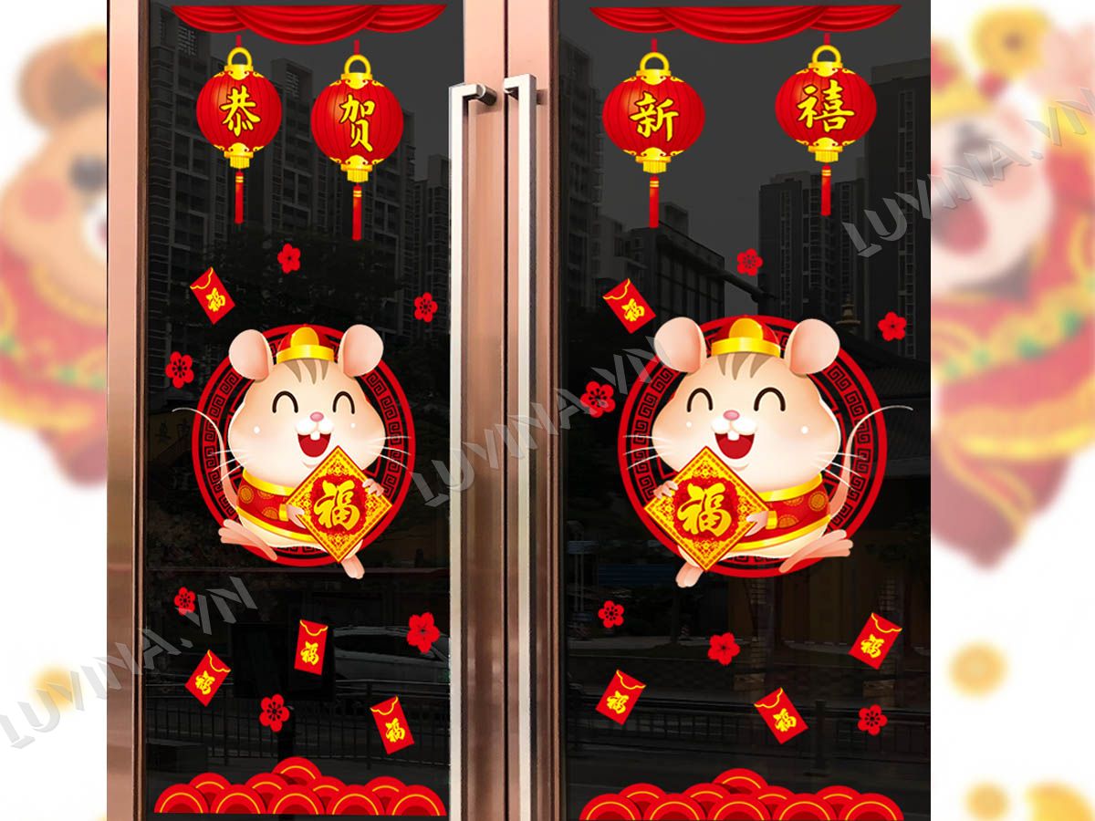 DECAL TRANG TRÍ TẾT CHUỘT LỒNG ĐÈN TREO CỬA