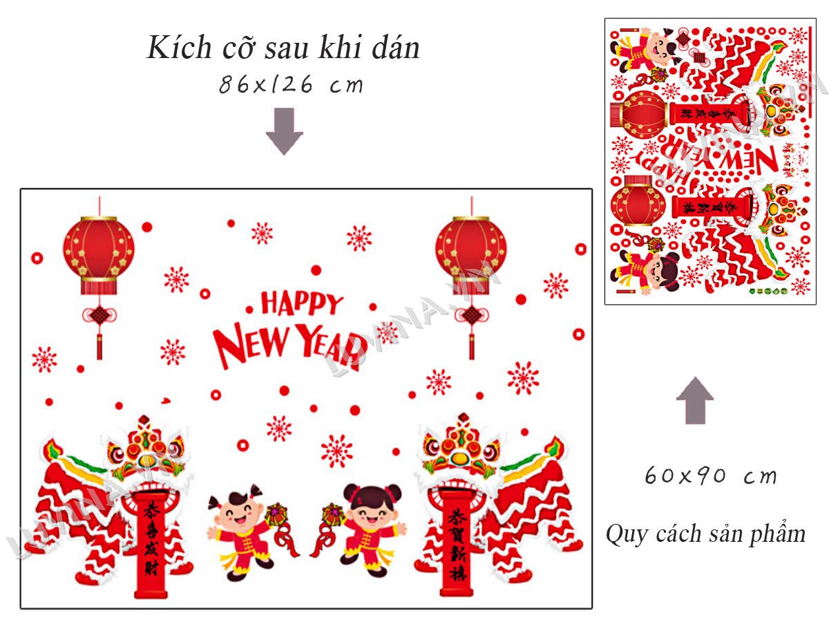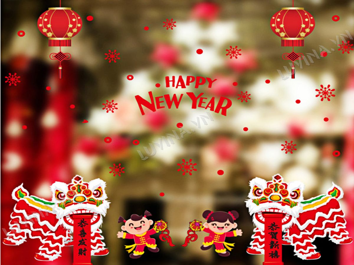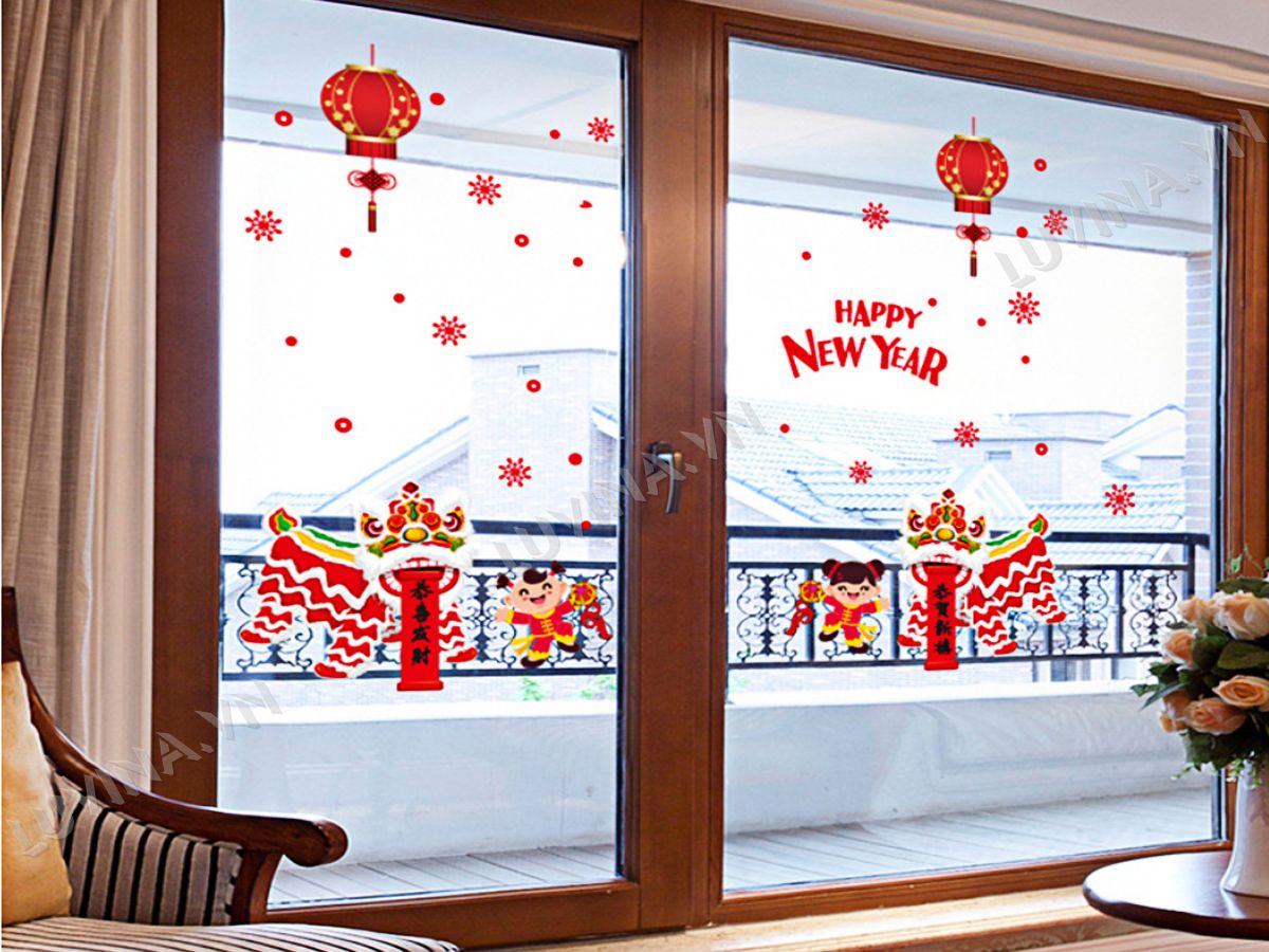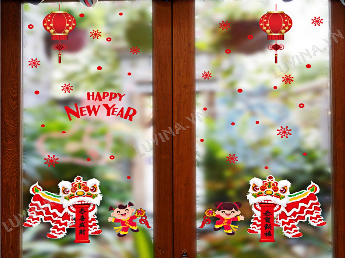 DECAL TRANG TRÍ TẾT CON LÂN ĐỎ DÁN TẾT