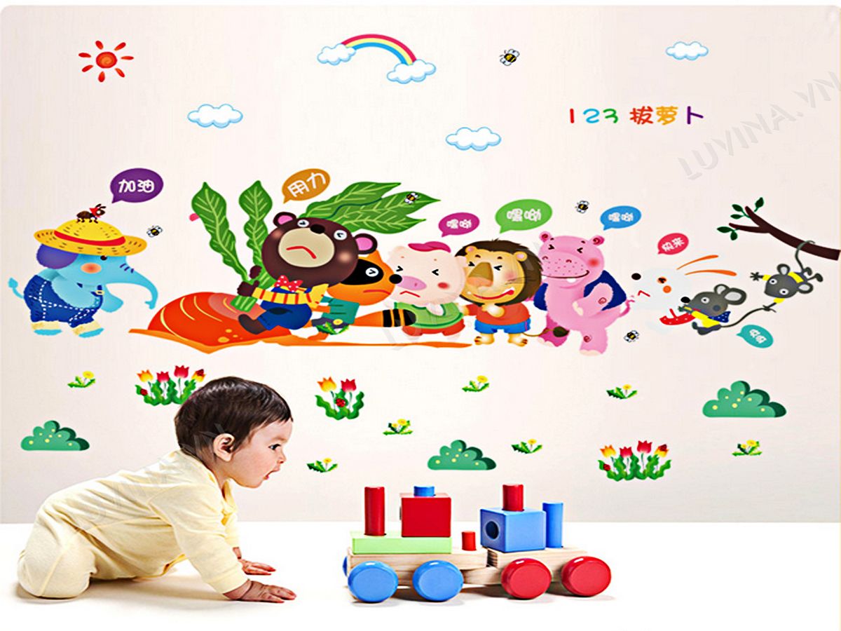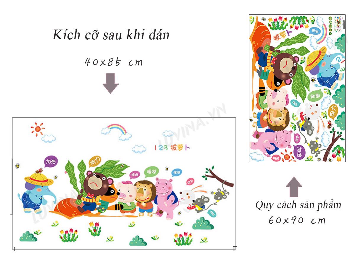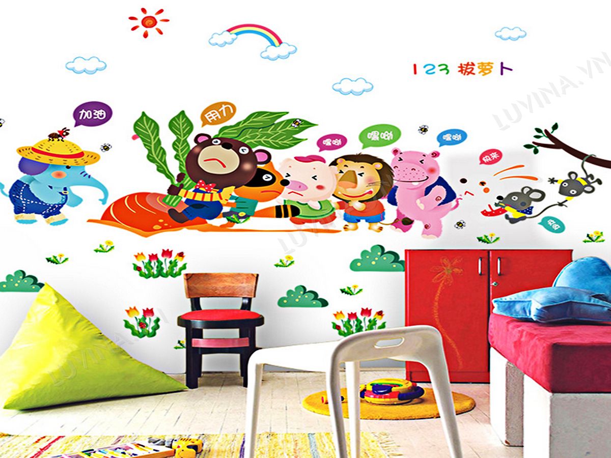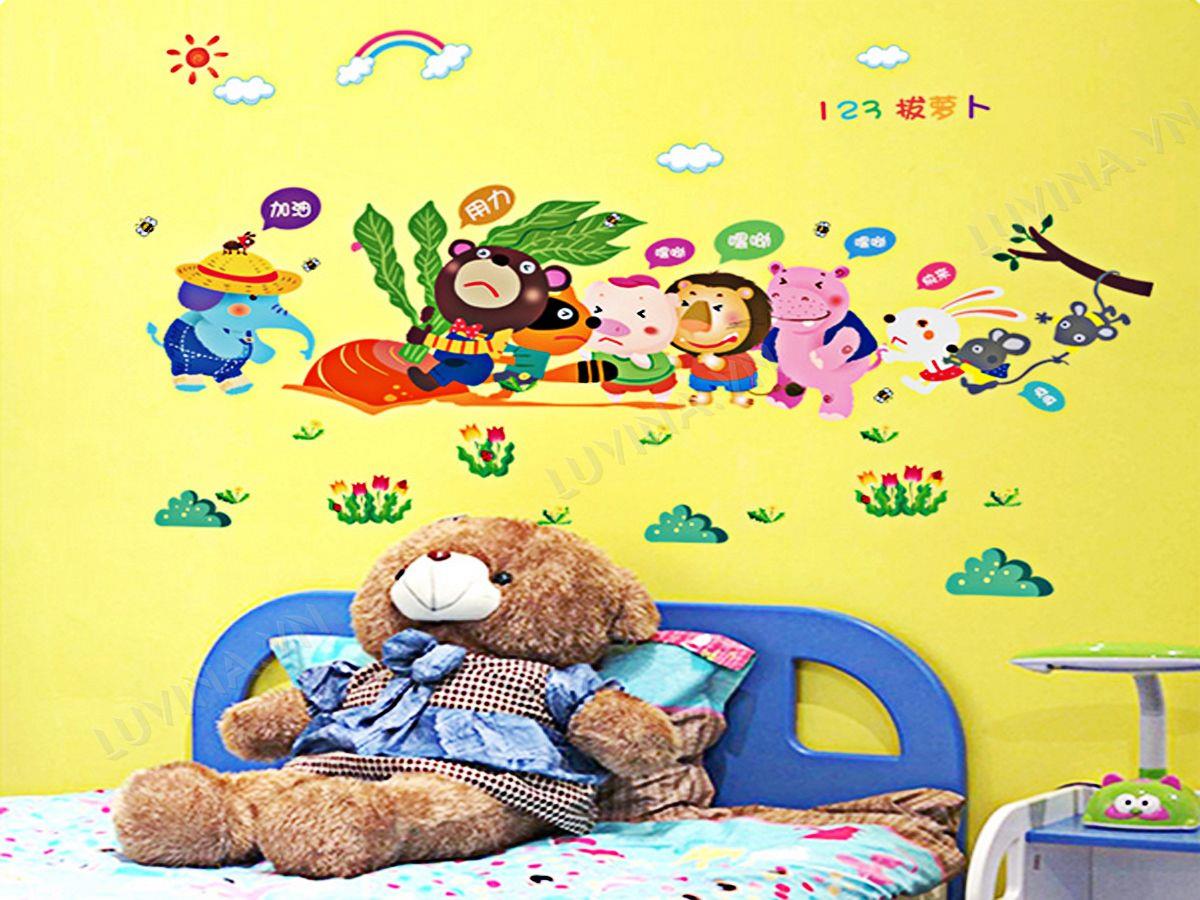 DECAL TRANG TRÍ THỎ NHỔ CỦ CẢI