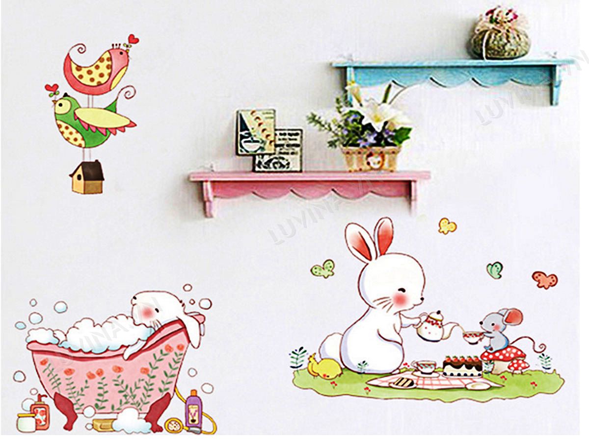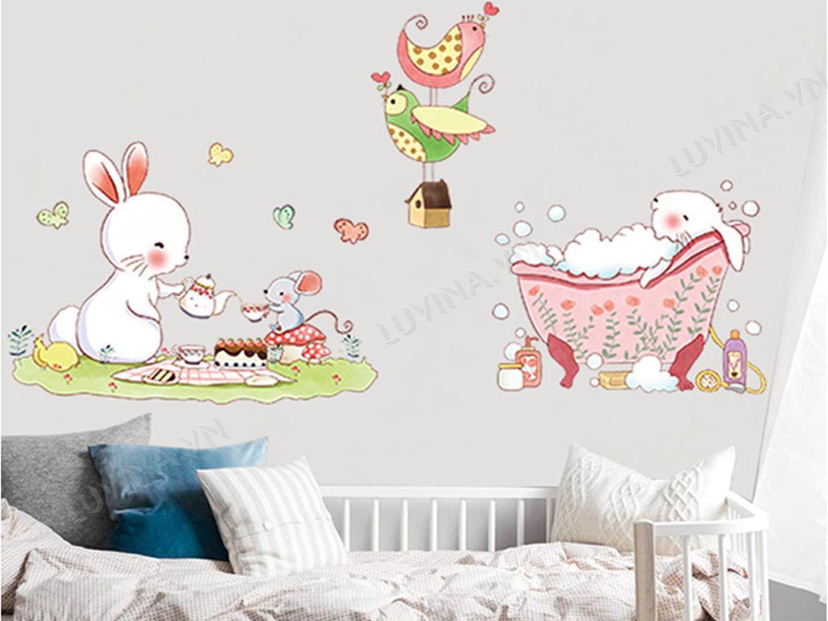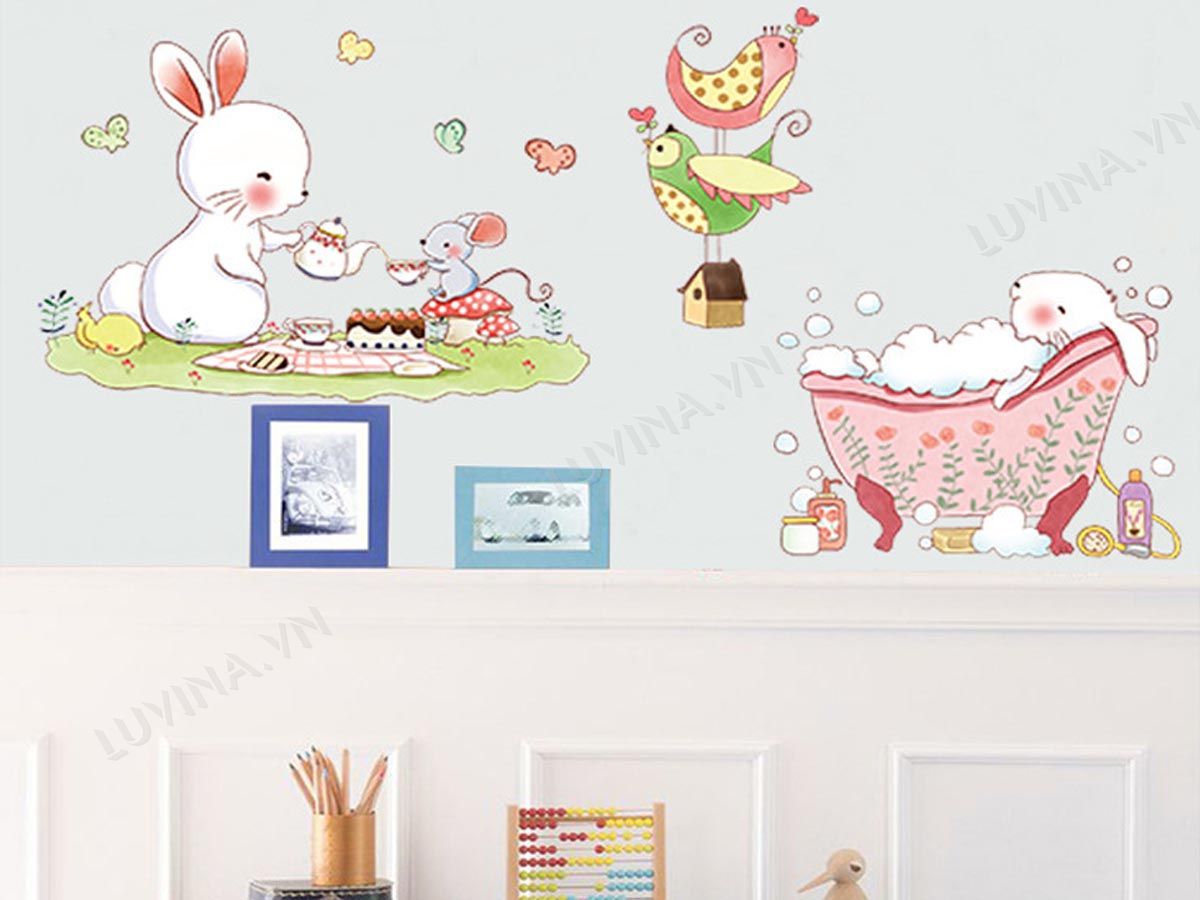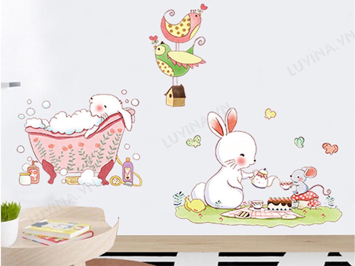 DECAL TRANG TRÍ THỎ UỐNG TRÀ
