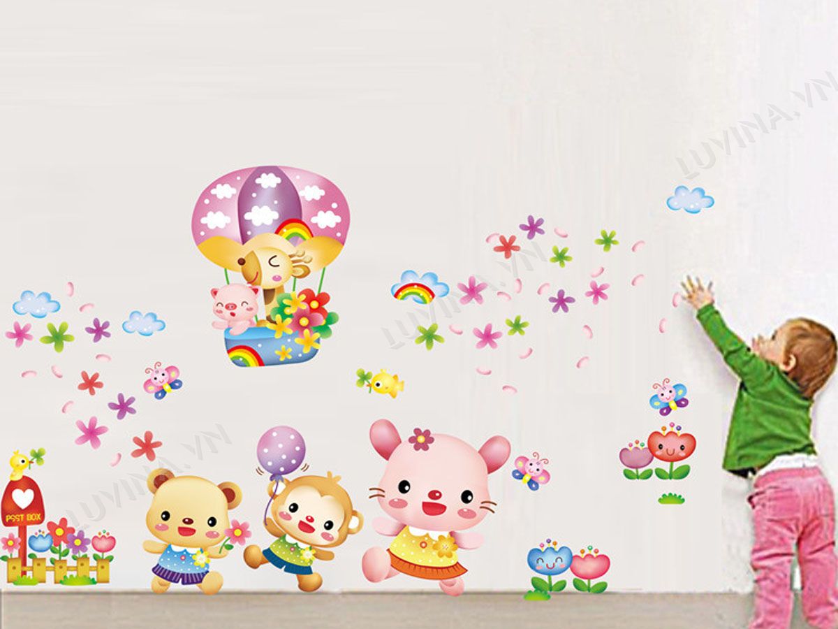 DECAL TRANG TRÍ THÚ HỒNG ĐÁNG YÊU