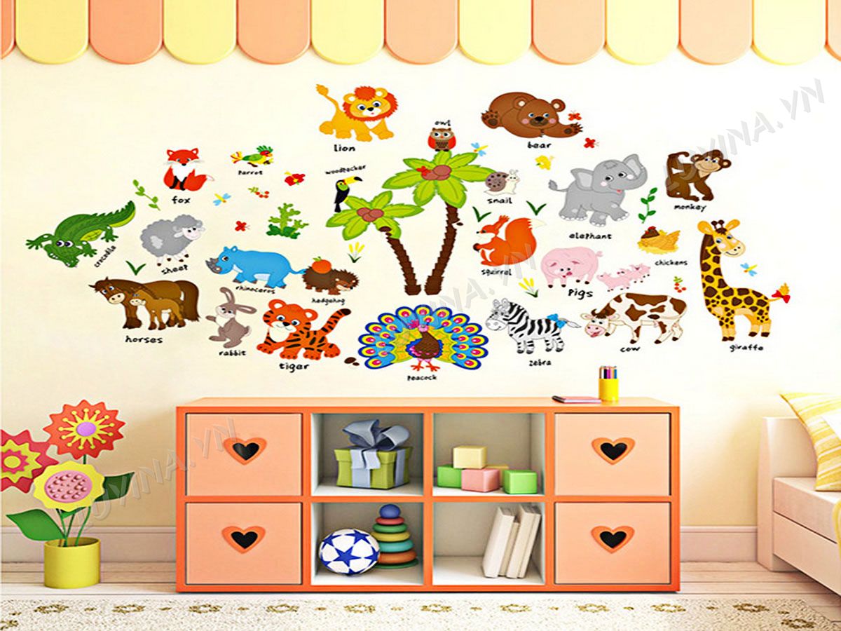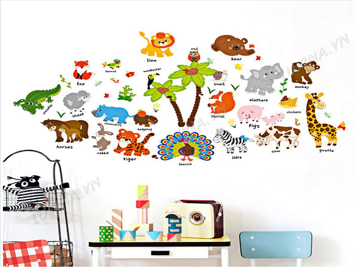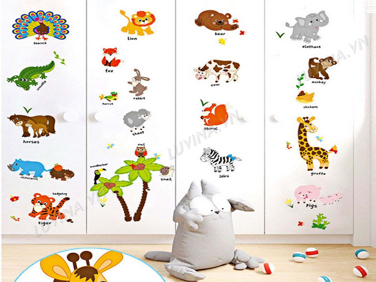 DECAL TRANG TRÍ THÚ TIẾNG ANH CON CÔNG