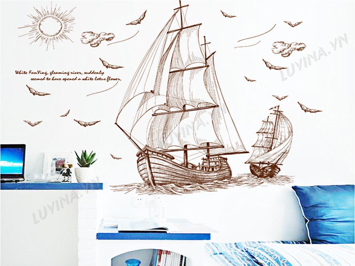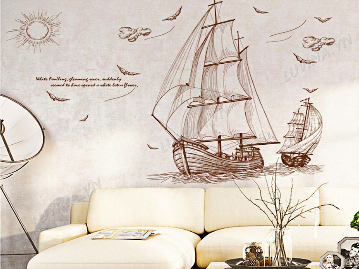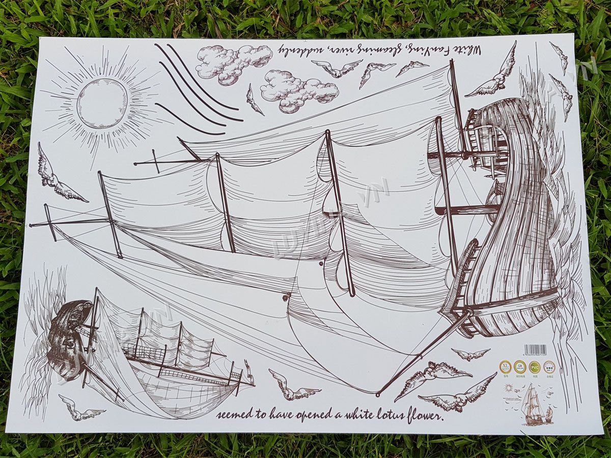 DECAL TRANG TRÍ THUYỀN BUỒM NÂU