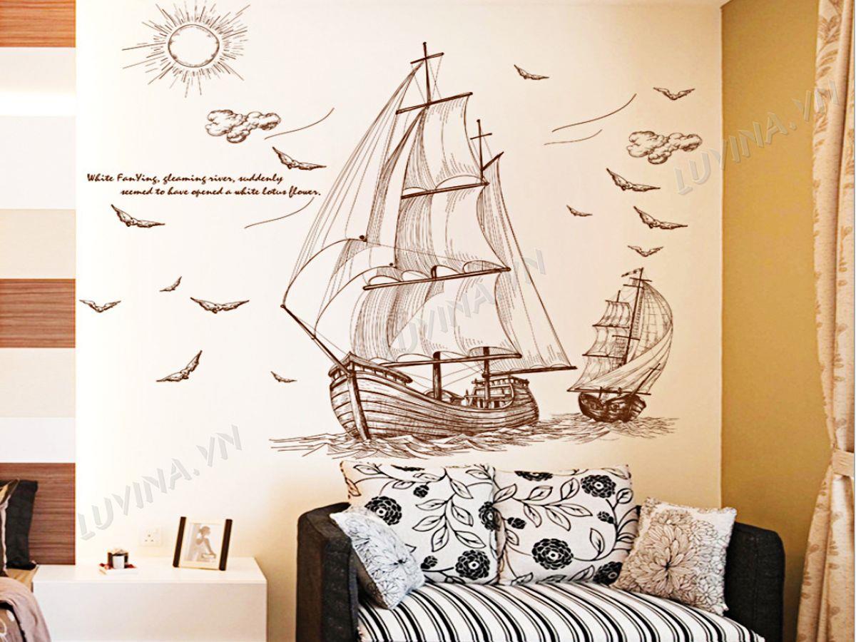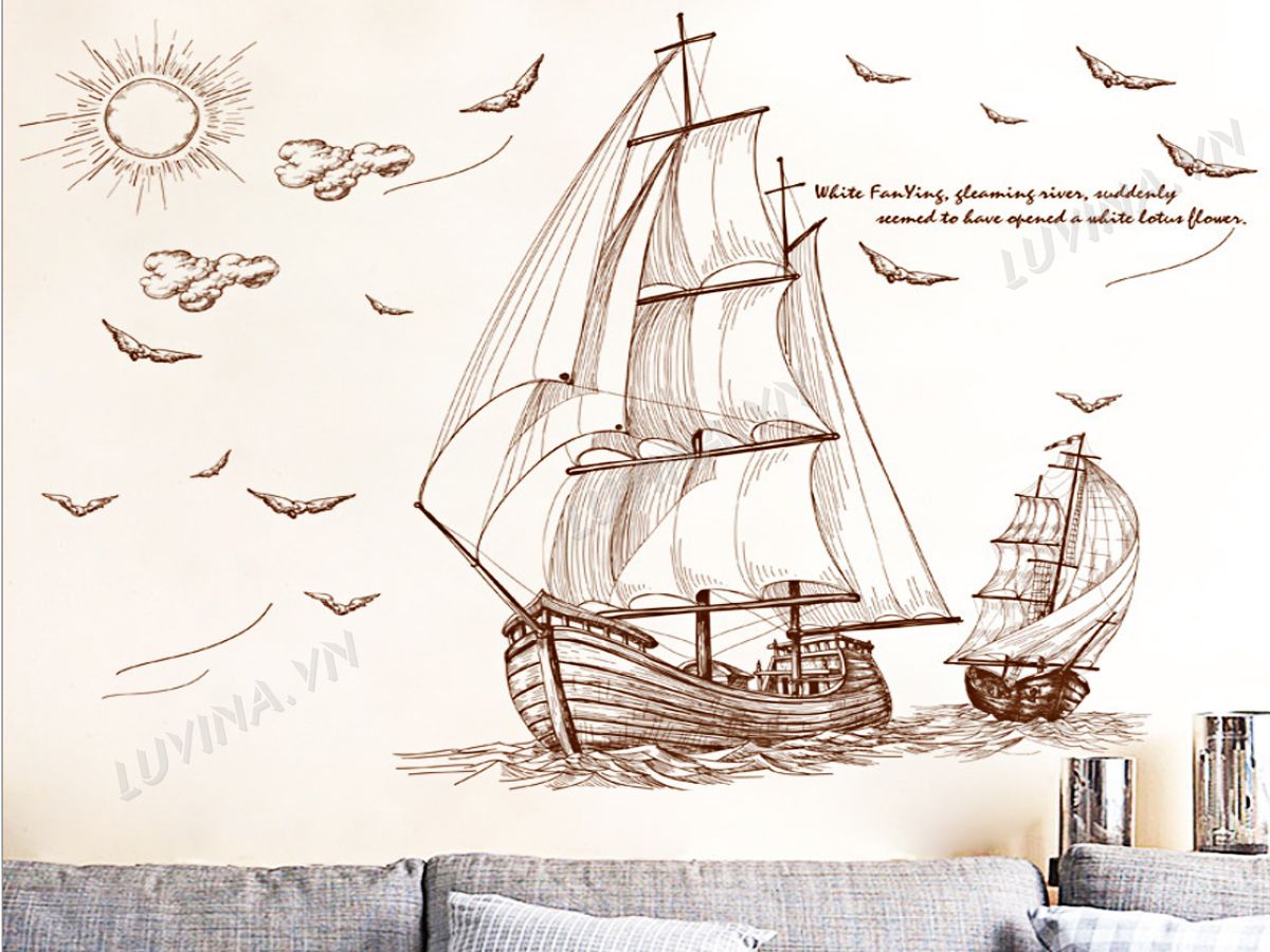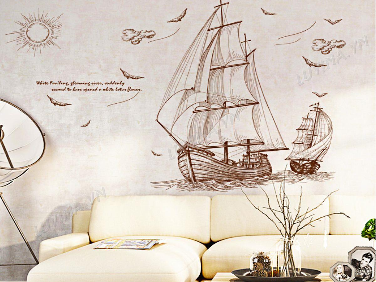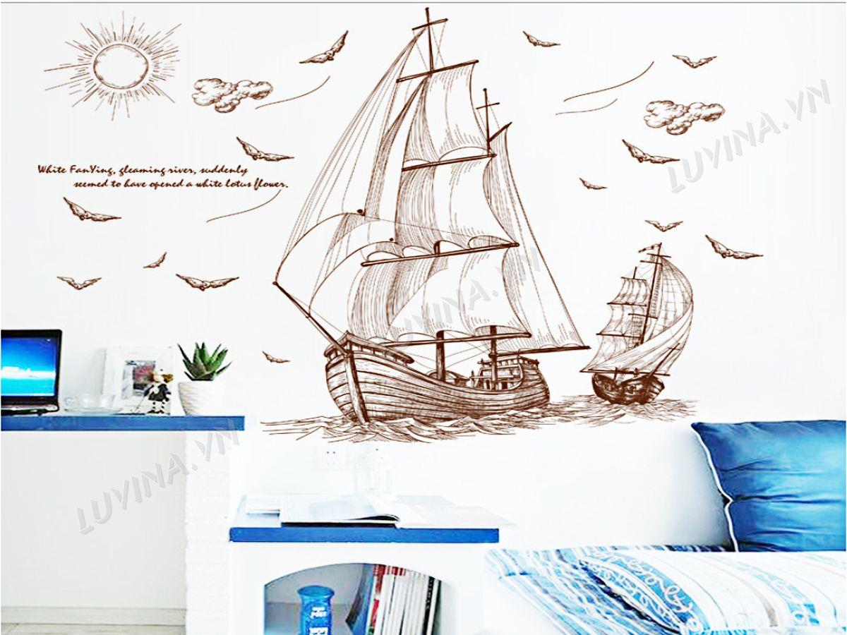 DECAL TRANG TRÍ THUYỀN BUỒM NÂU