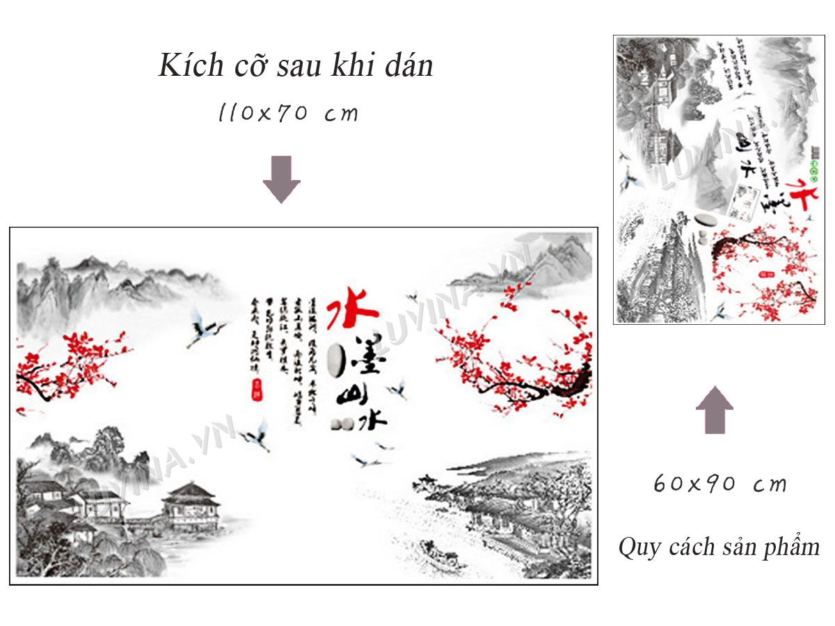 DECAL TRANG TRÍ TRANH PHONG THỦY ĐÀO ĐỎ