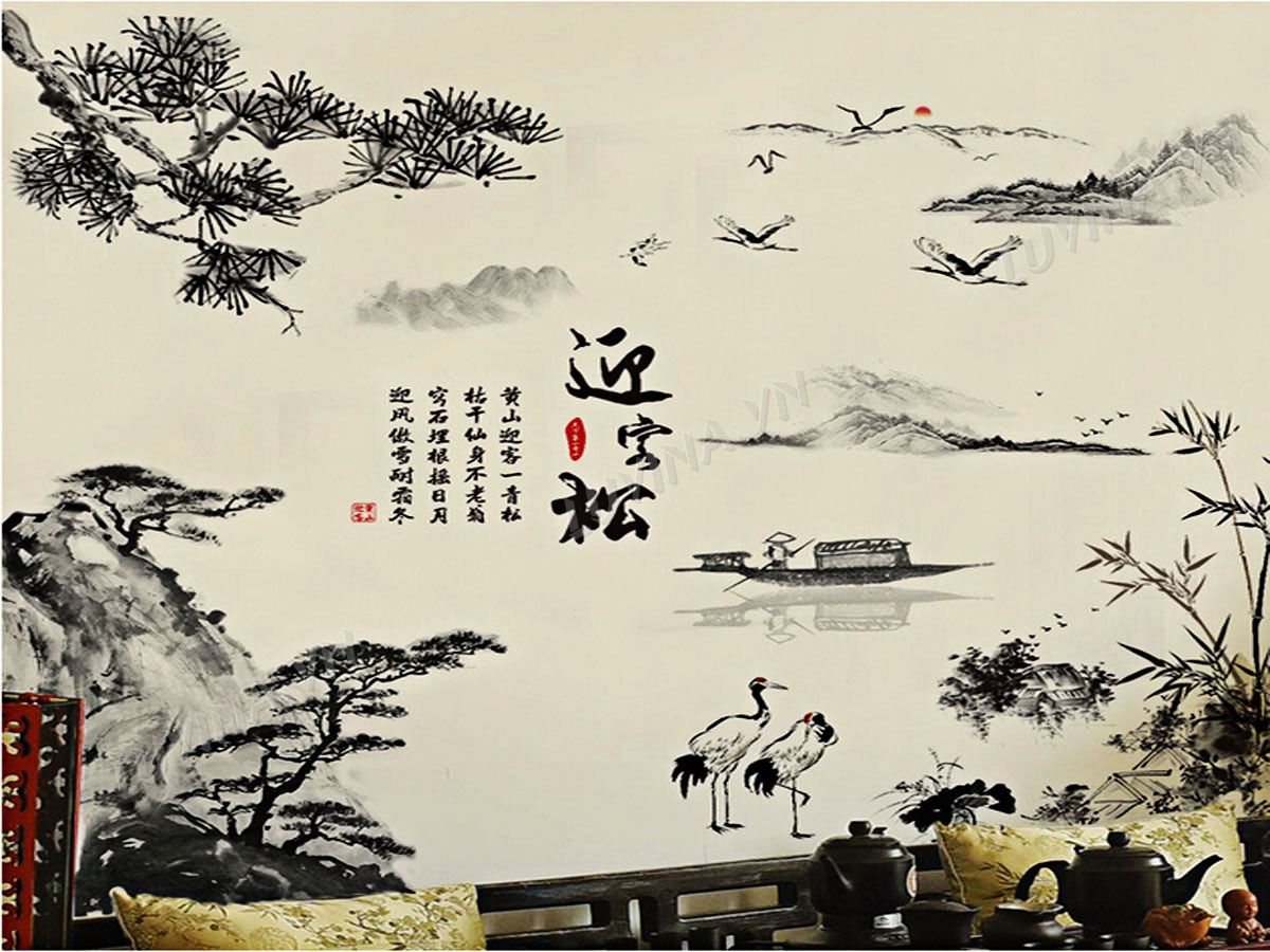 DECAL TRANG TRÍ TRANH PHONG THỦY NÚI SÔNG