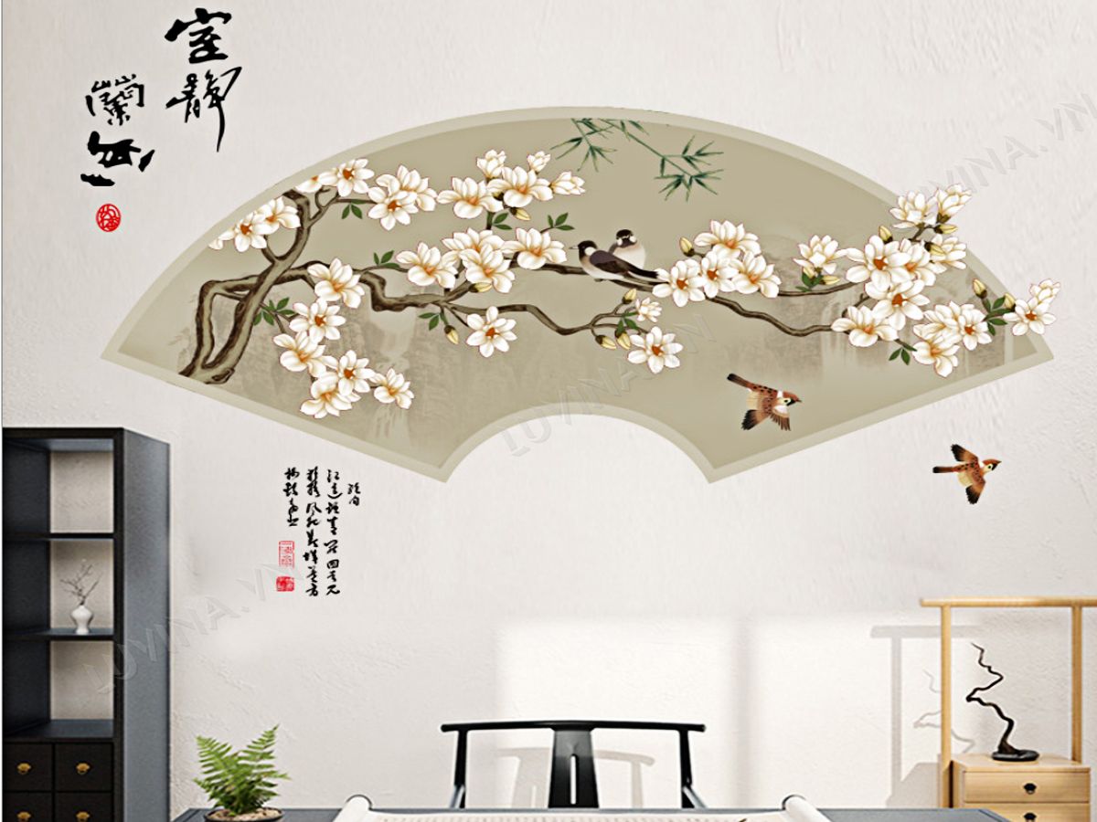 DECAL TRANG TRÍ VÒM QUẠT MAI TRẮNG