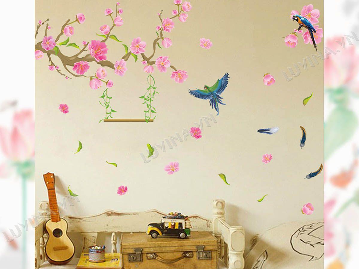 DECAL TRANG TRÍ XÍCH ĐU CÂY ĐÀO
